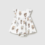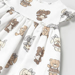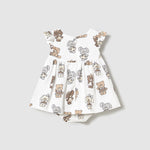 Vestito bretelle con volant per neonato. Chiusura con cerniera nella parte posteriore per un vestibilità rapida e comoda. Design stampato.