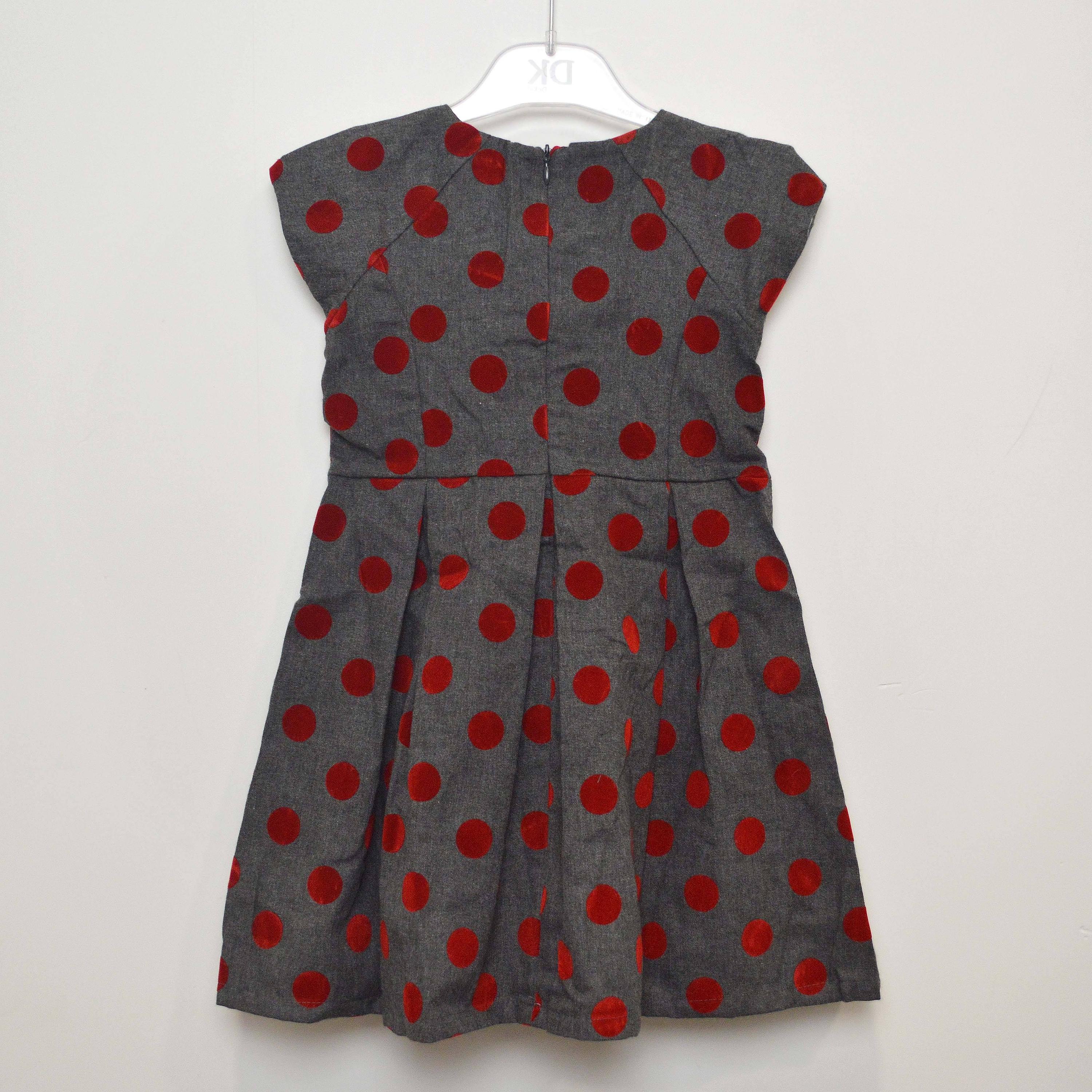 -Elegantes ärmelloses Kleid mit roten Samtpunkten und roten Samtschleifen auf der Brust