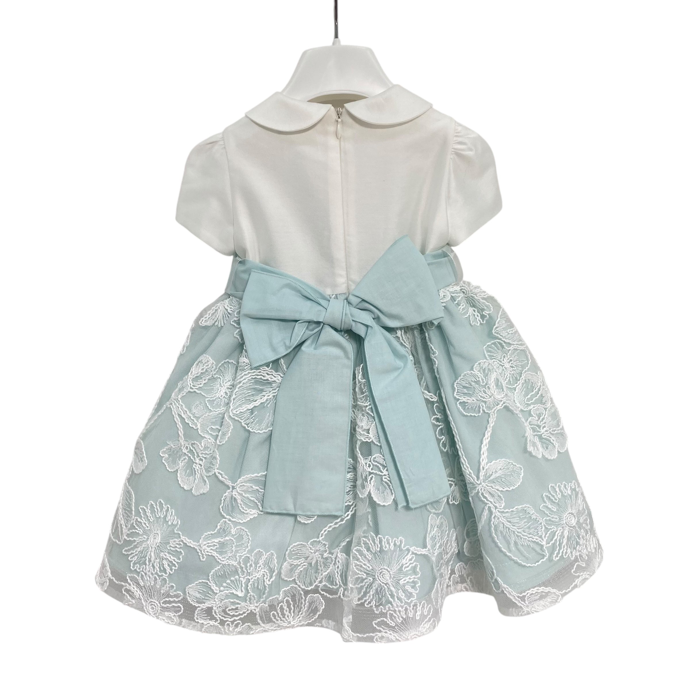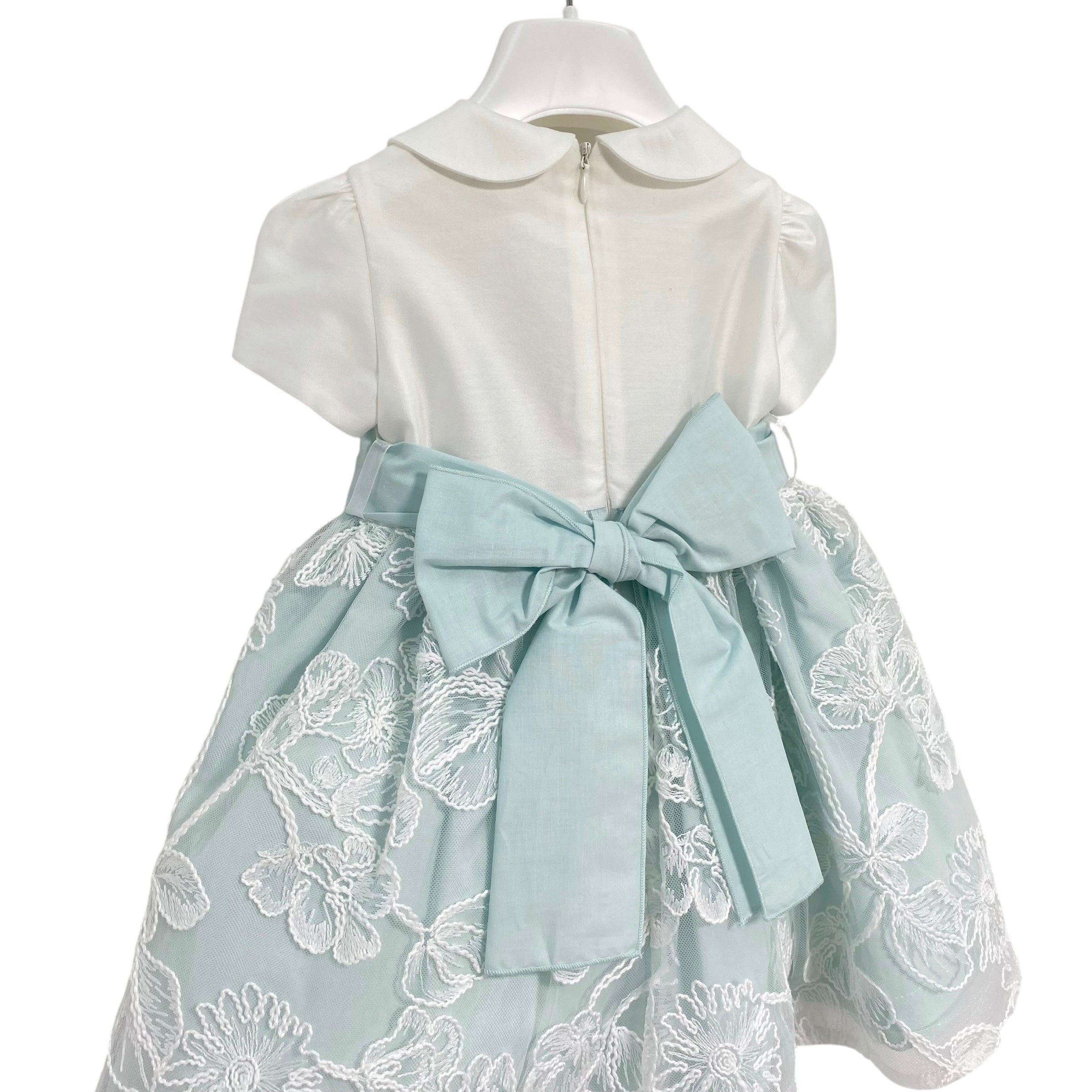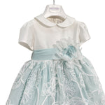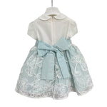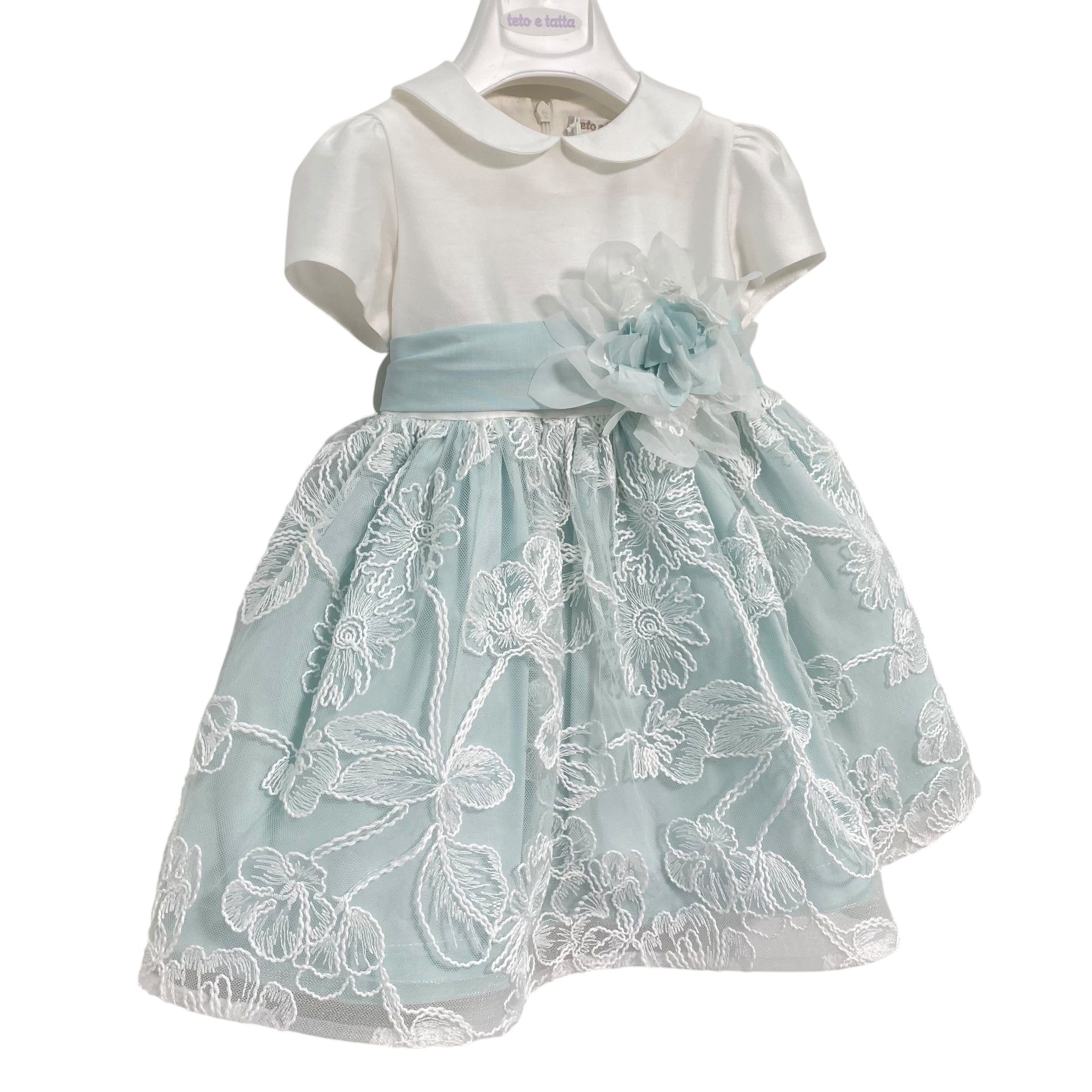 L'abito elegante TETO E TATTA è perfetto per ogni occasione speciale. Con il suo corpetto stretto e la gonna ampia, ricoperta da un delicato pizzo rebrode', rendera' la tua neonata ancora più elegante. La fascia in vita con fiore e la chiusura sul retro con zip invisibile completano il look perfetto per ogni cerimonia.