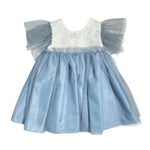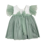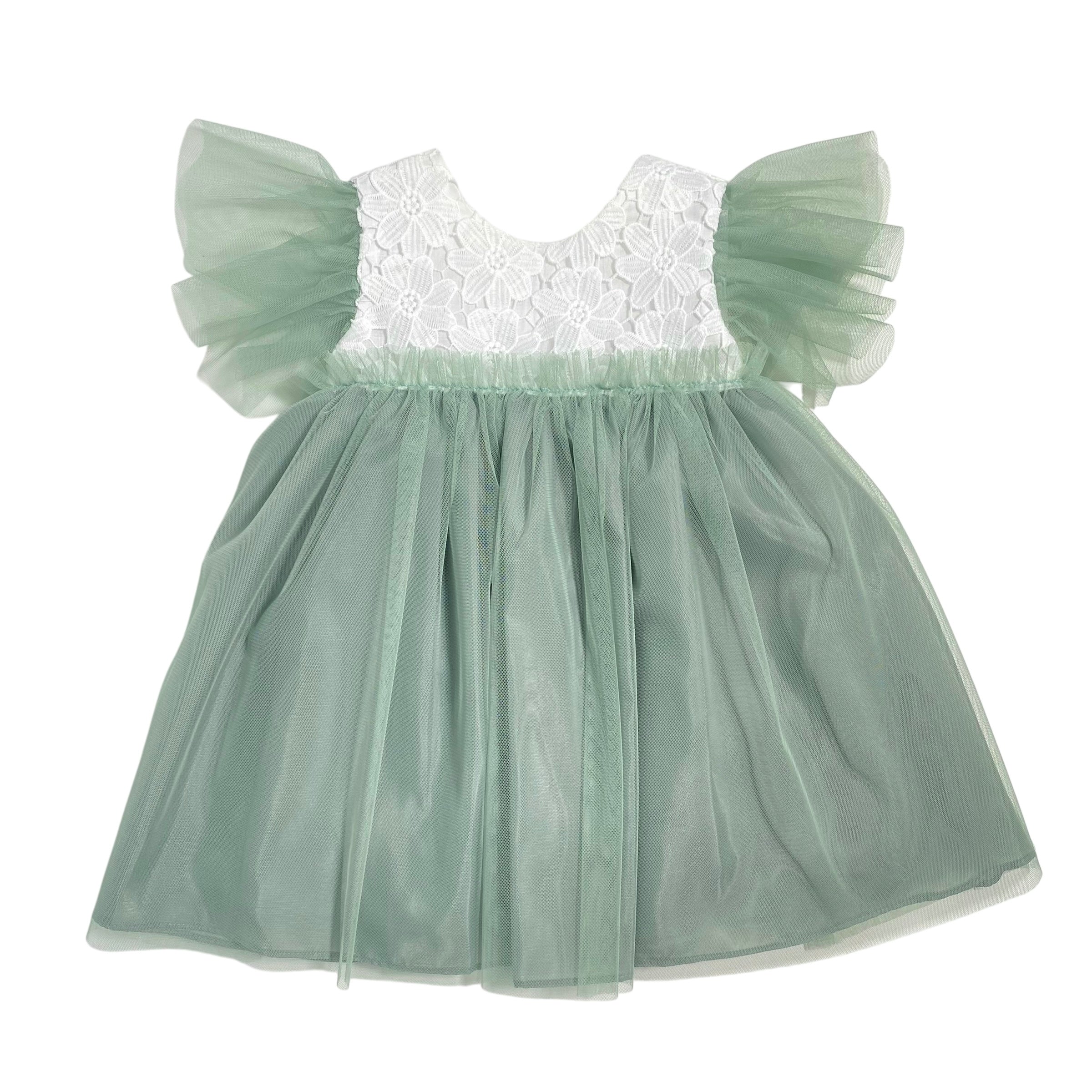 Questo abito elegante è perfetto per occasioni speciali. Realizzato con un corpetto in macramè e gonna in tulle, presenta una mezza manica in tulle e una chiusura con zip invisibile. Aggiunge un tocco di eleganza al guardaroba della tua bambina.