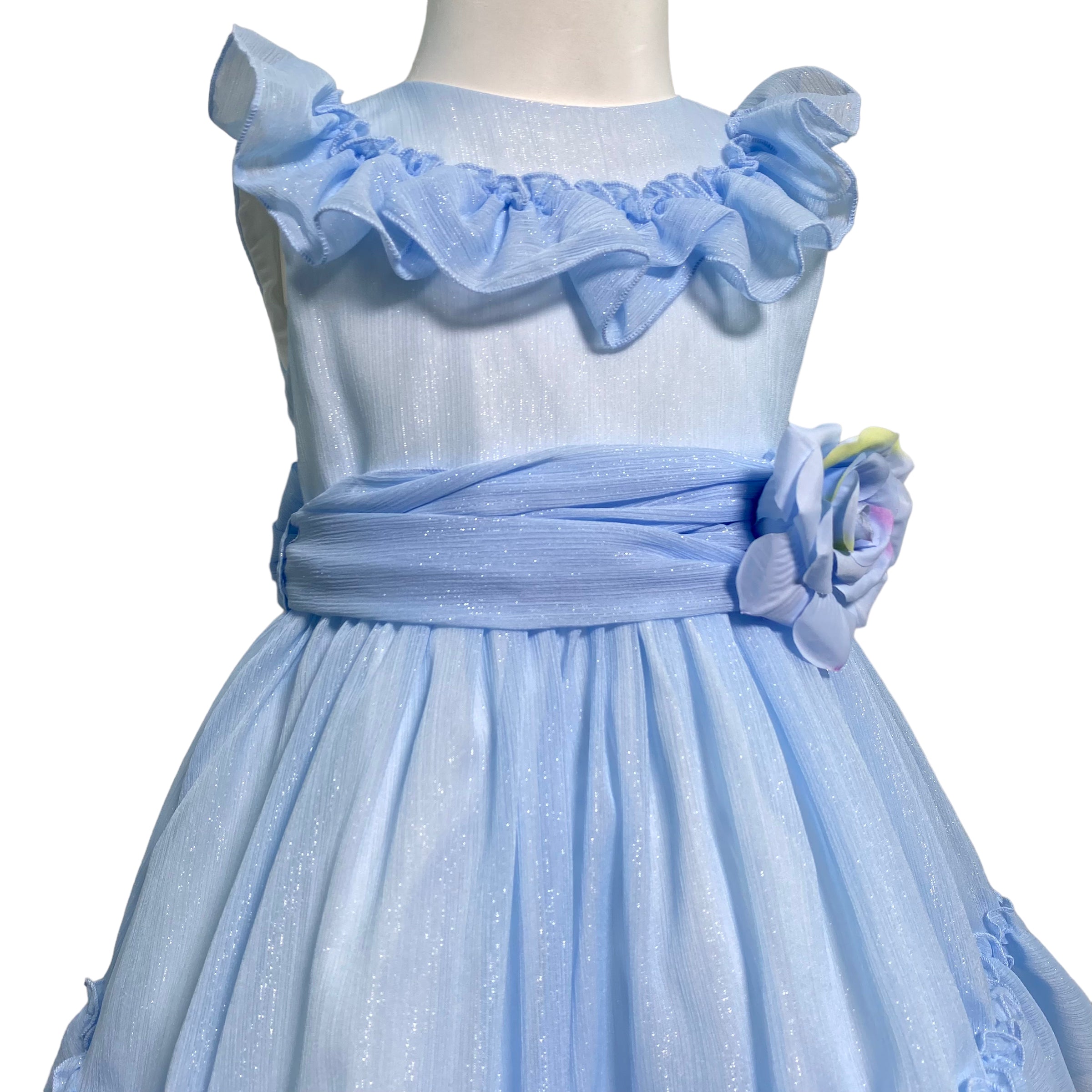 Applicazione di fascia in vita con rosa, con chiusura sul retro con fioccone.
