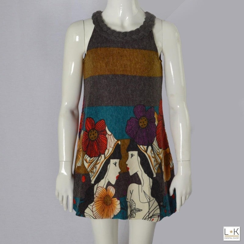 Ärmelloses Kleid aus Wollmischung mit mehrfarbigem Aufdruck.
