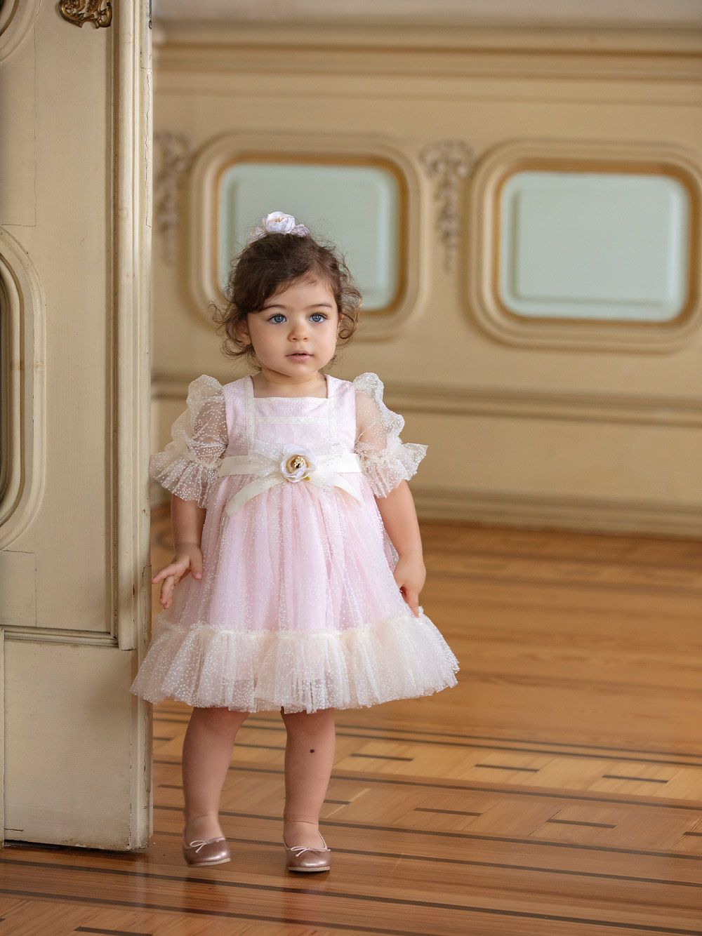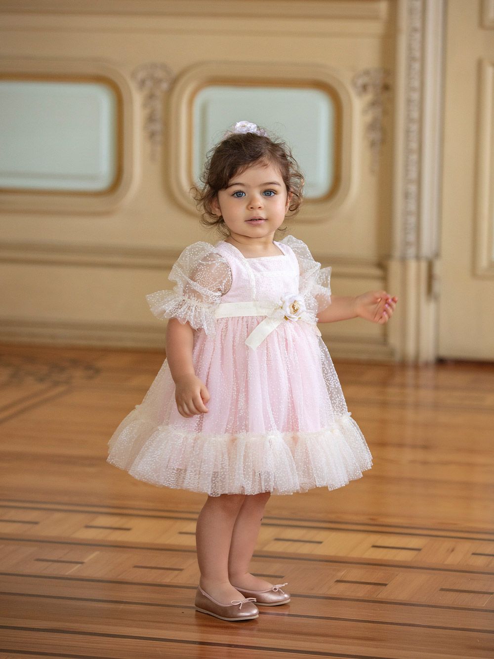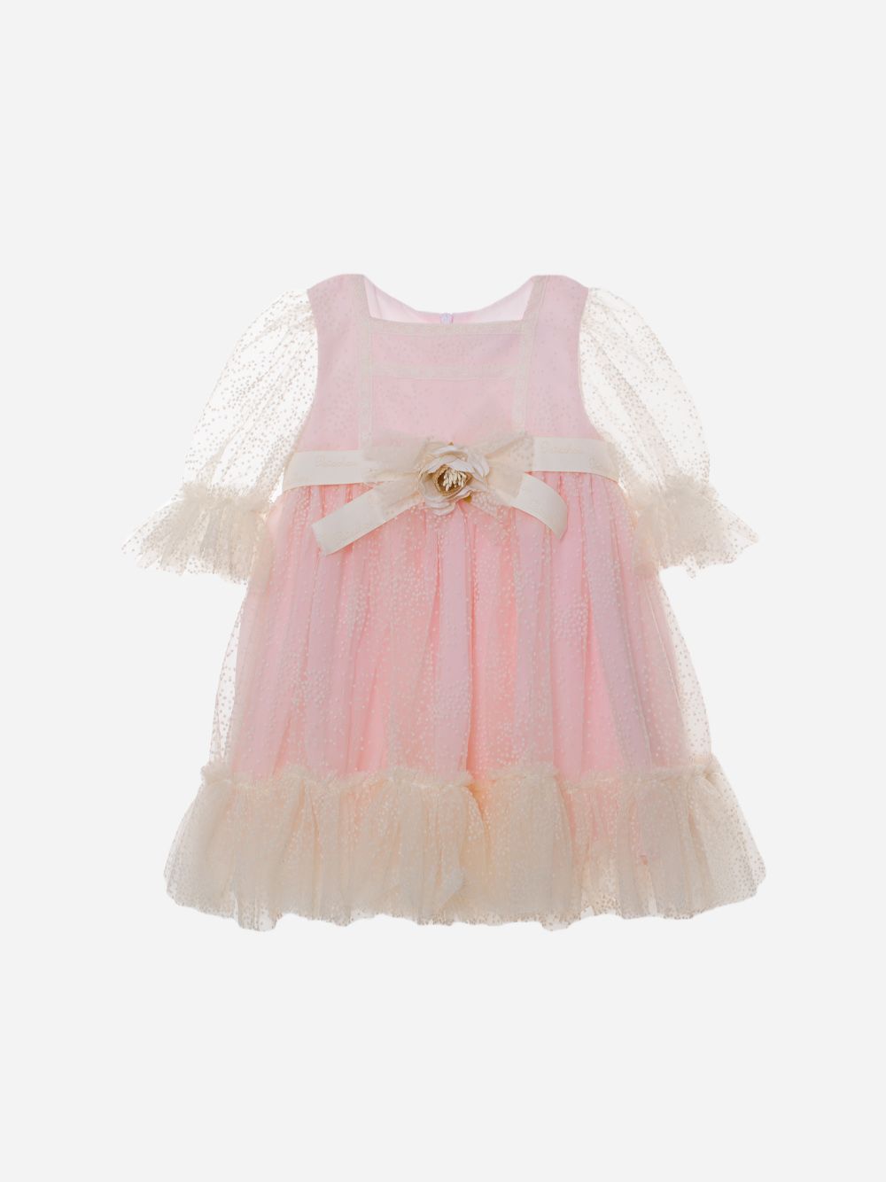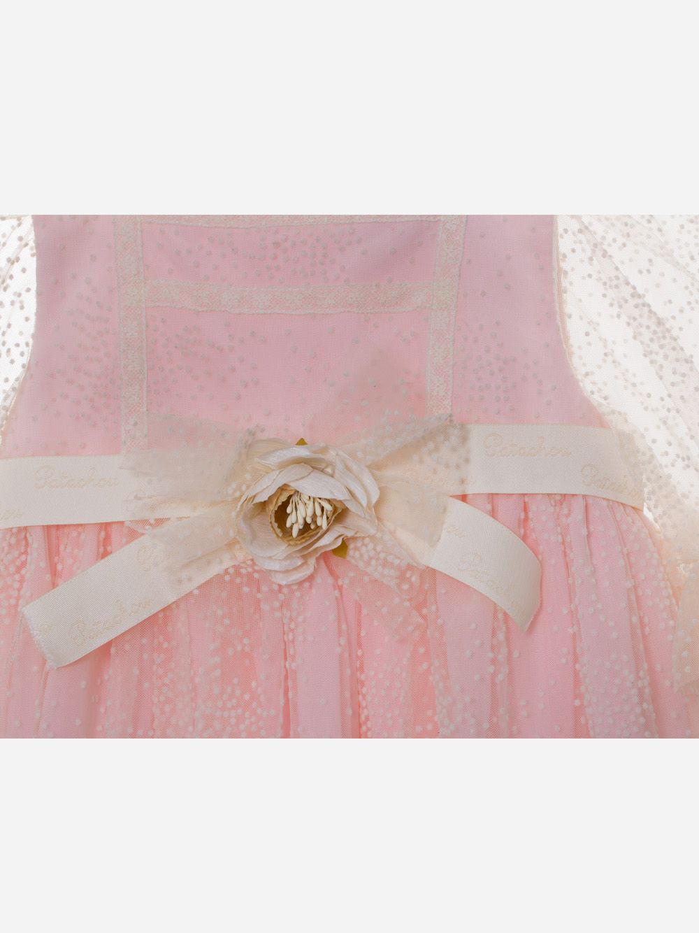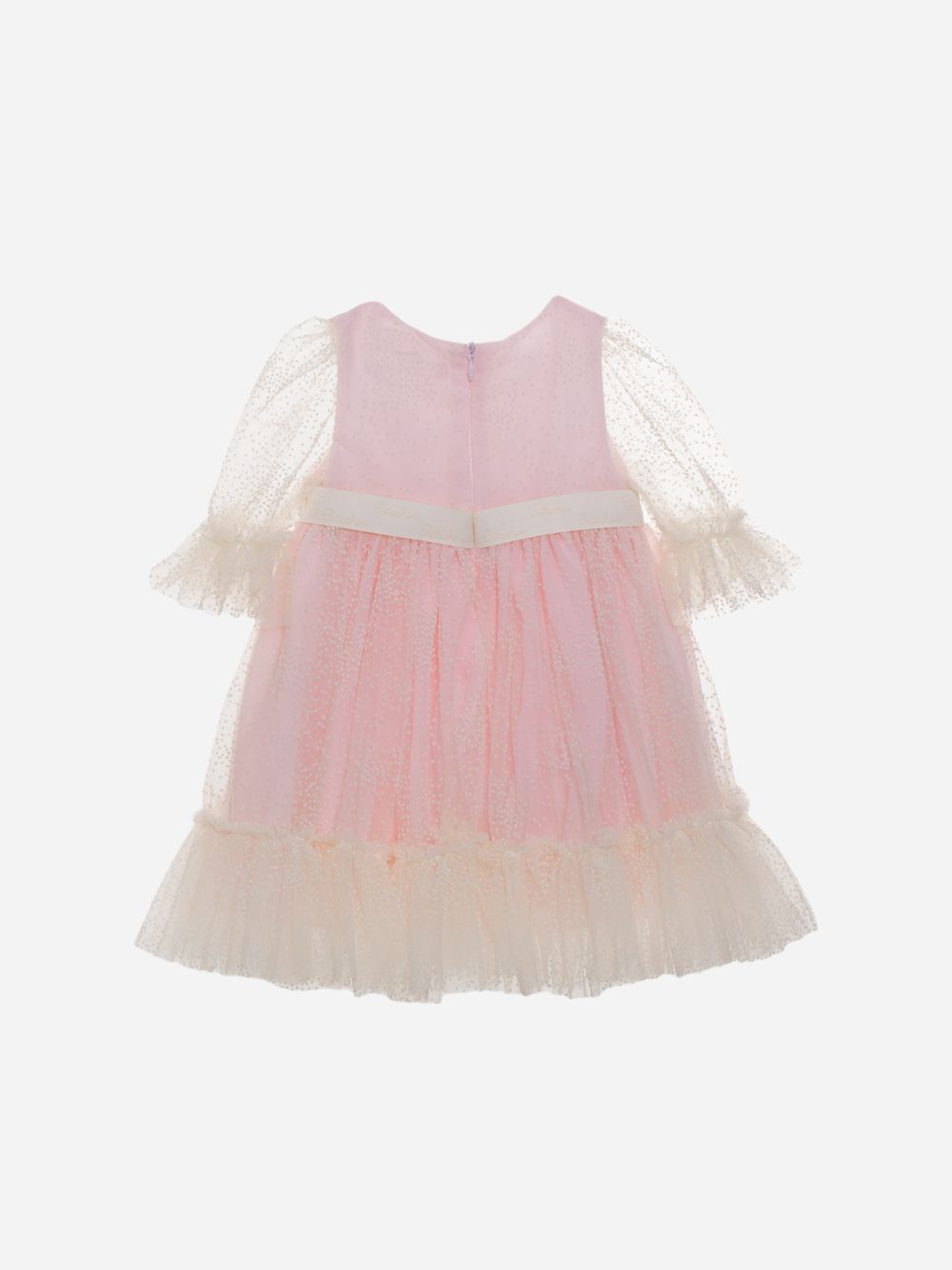 - Basic-Kleid in Rosa mit cremefarbenem, gepunktetem Tüll im Relief