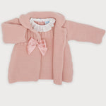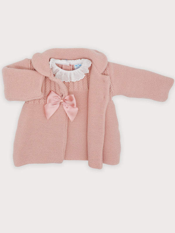 Langärmliges Kleid aus hypoallergenem Acrylstoff, mit weißem Kragen aus San Gallo-Spitze und Satinschleife auf der Brust.