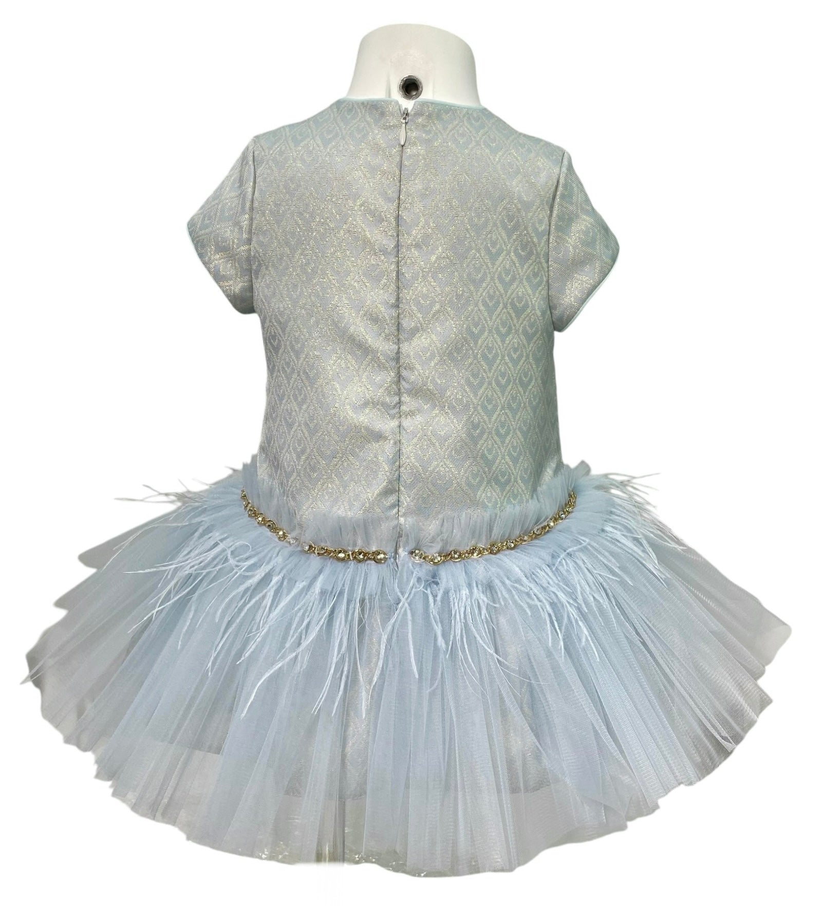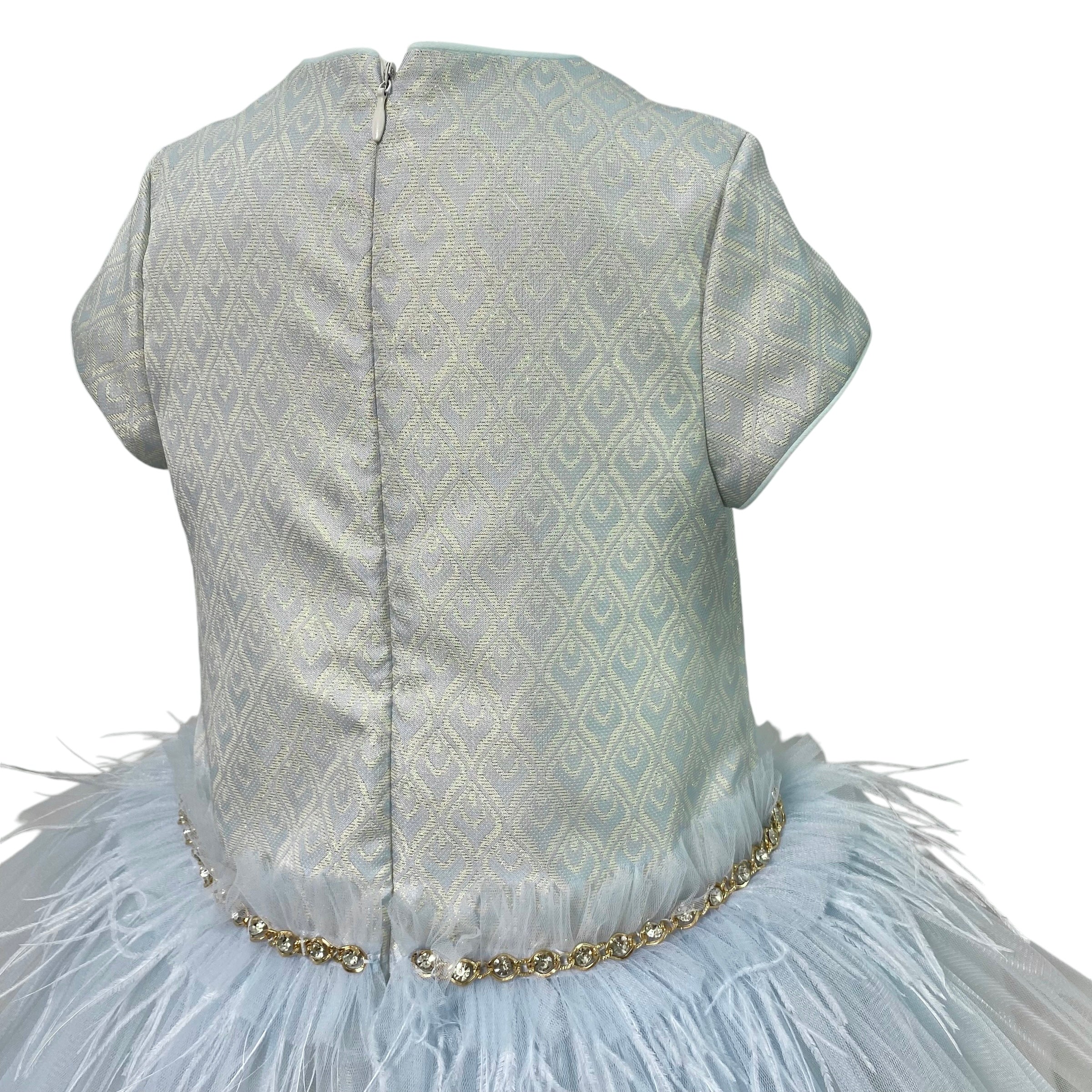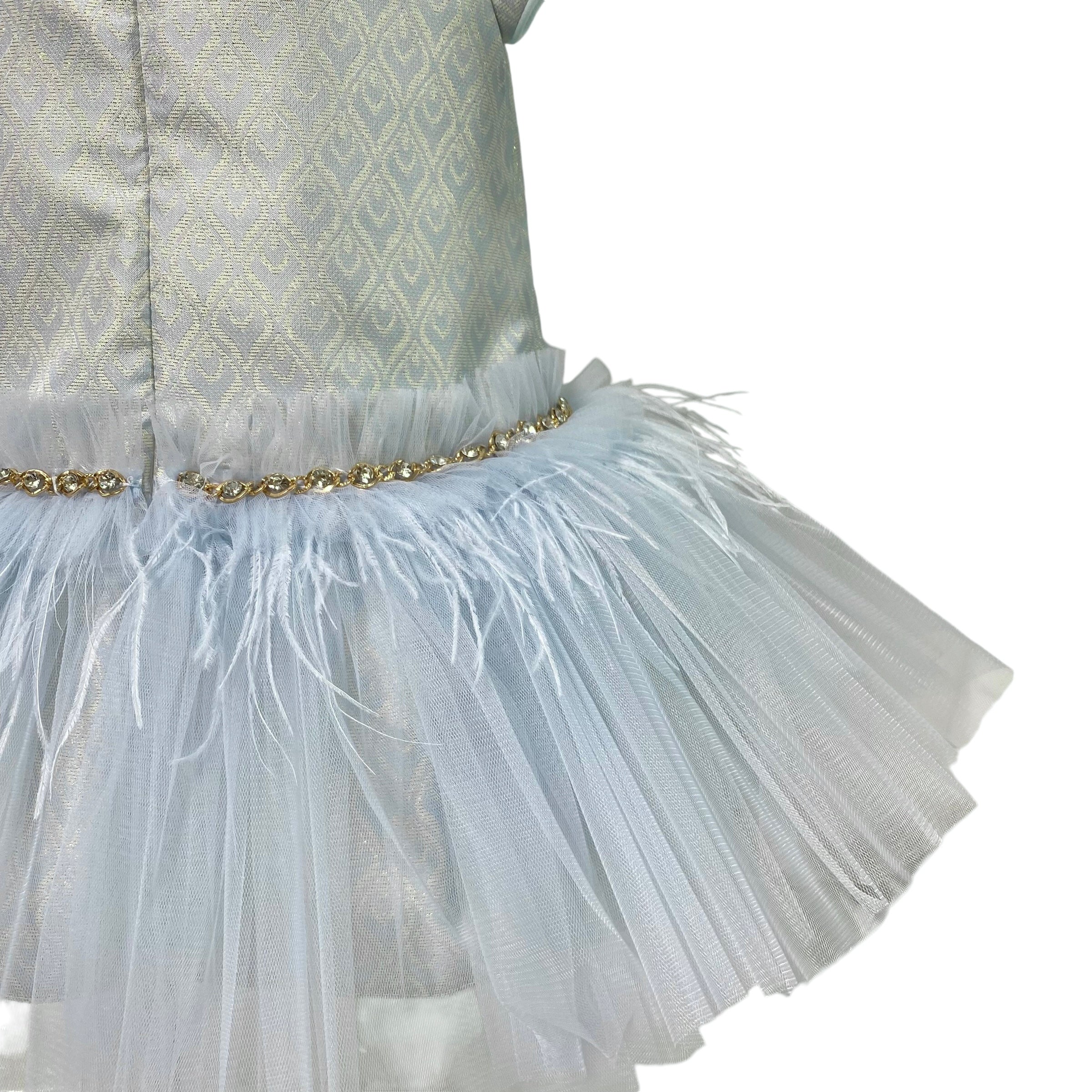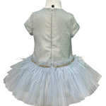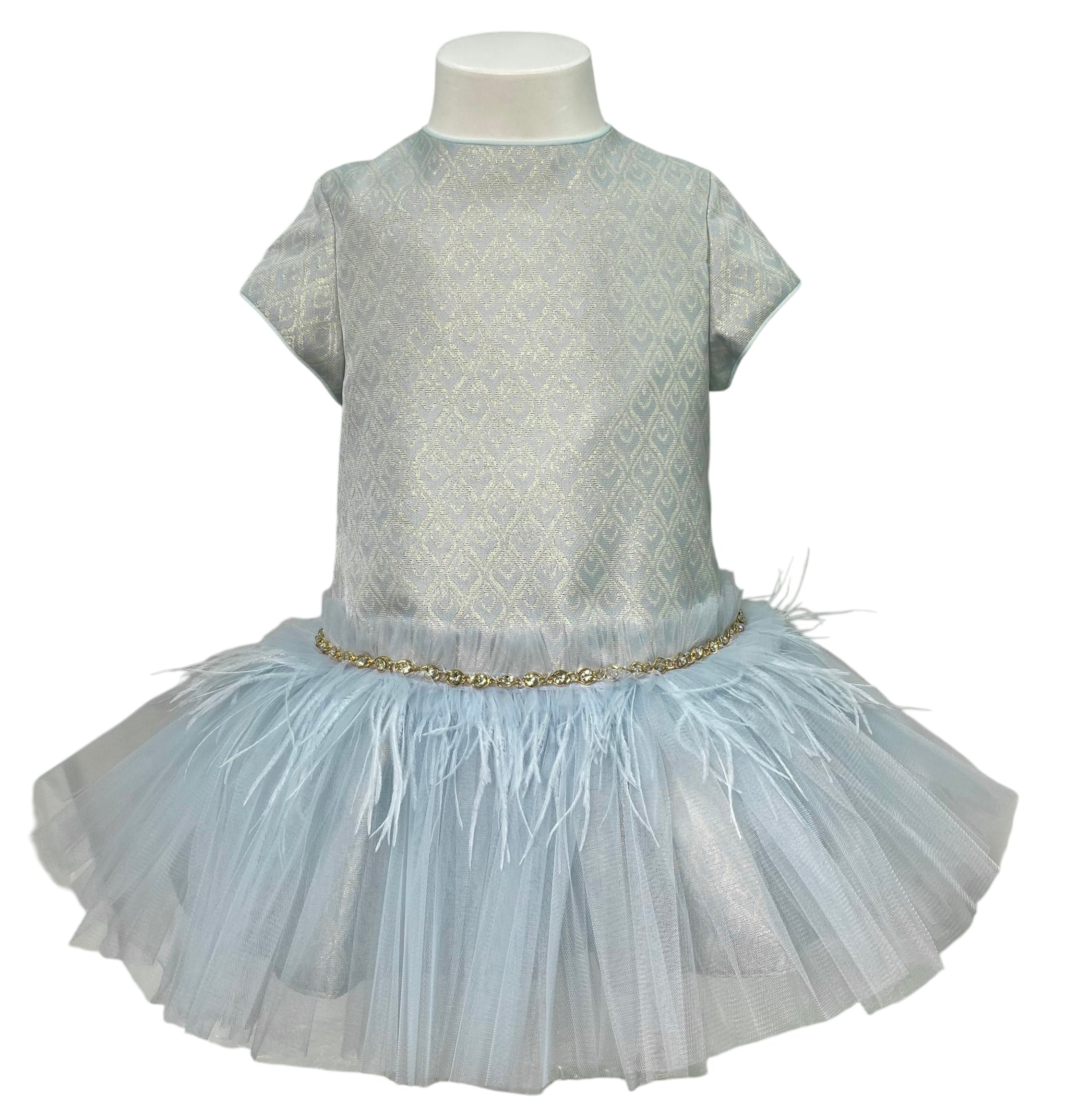 Questo abito mezza manica con corpetto damascato e gonna vita bassa in tulle è perfetto per le bambine alla moda e per le occasioni speciali. Con il suo design elegante, sarà sicuramente un'aggiunta straordinaria al guardaroba della tua bambina. Scopri il lato elegante e sofisticato con questo abito DAGA.