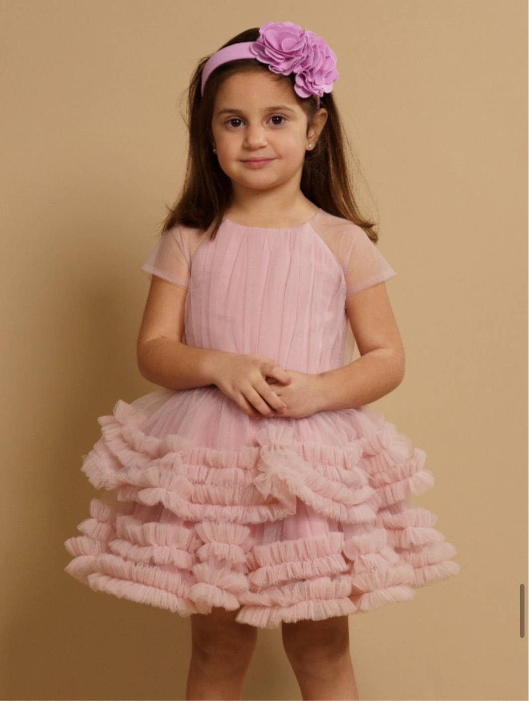 Questo abito mezza manica in tulle plissettato Neonata PETIT POSH è l'ideale per le occasioni eleganti e casual, grazie alle sue balze in tulle che donano un tocco di eleganza. Realizzato con materiali di qualità, è perfetto per essere alla moda in ogni occasione.
