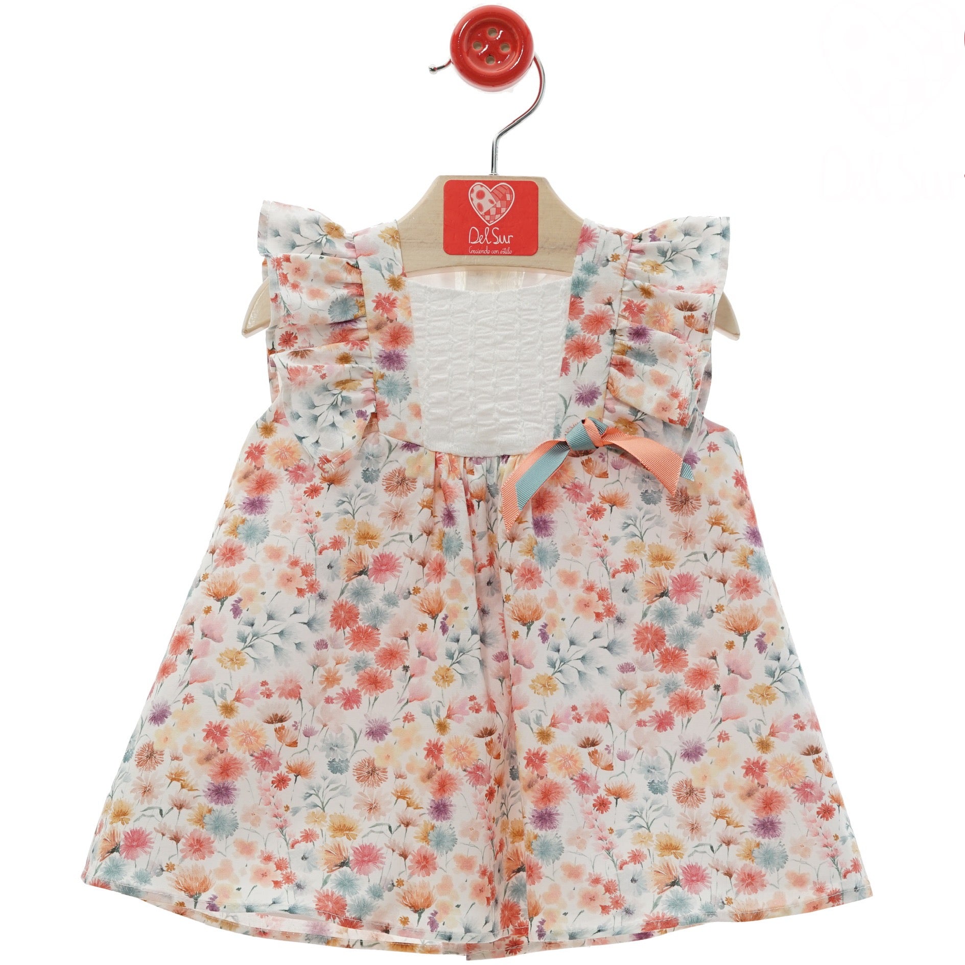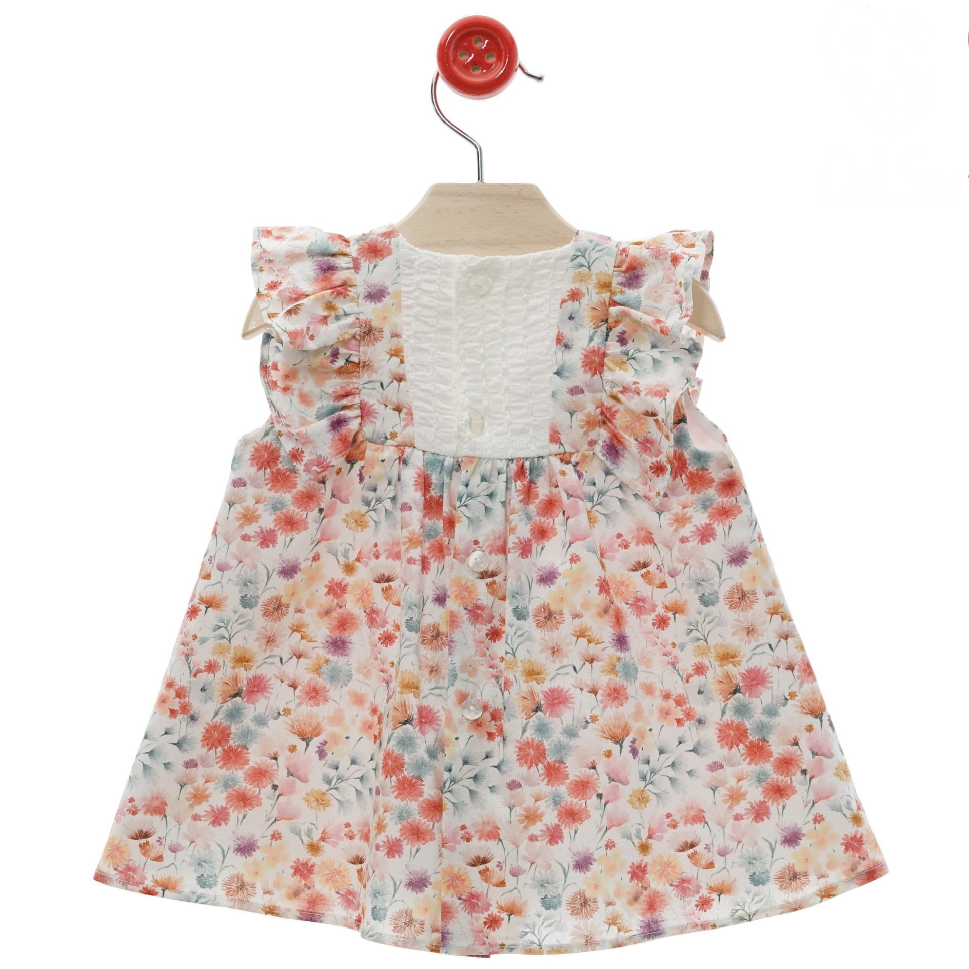 Questo delizioso abito per neonate è perfetto per l'estate. Realizzato in morbido cotone con una vivace stampa floreale, questo abito svasato è elegante e chic. Con i suoi colori estivi, la tua bambina sarà il fiore più bello del giardino.