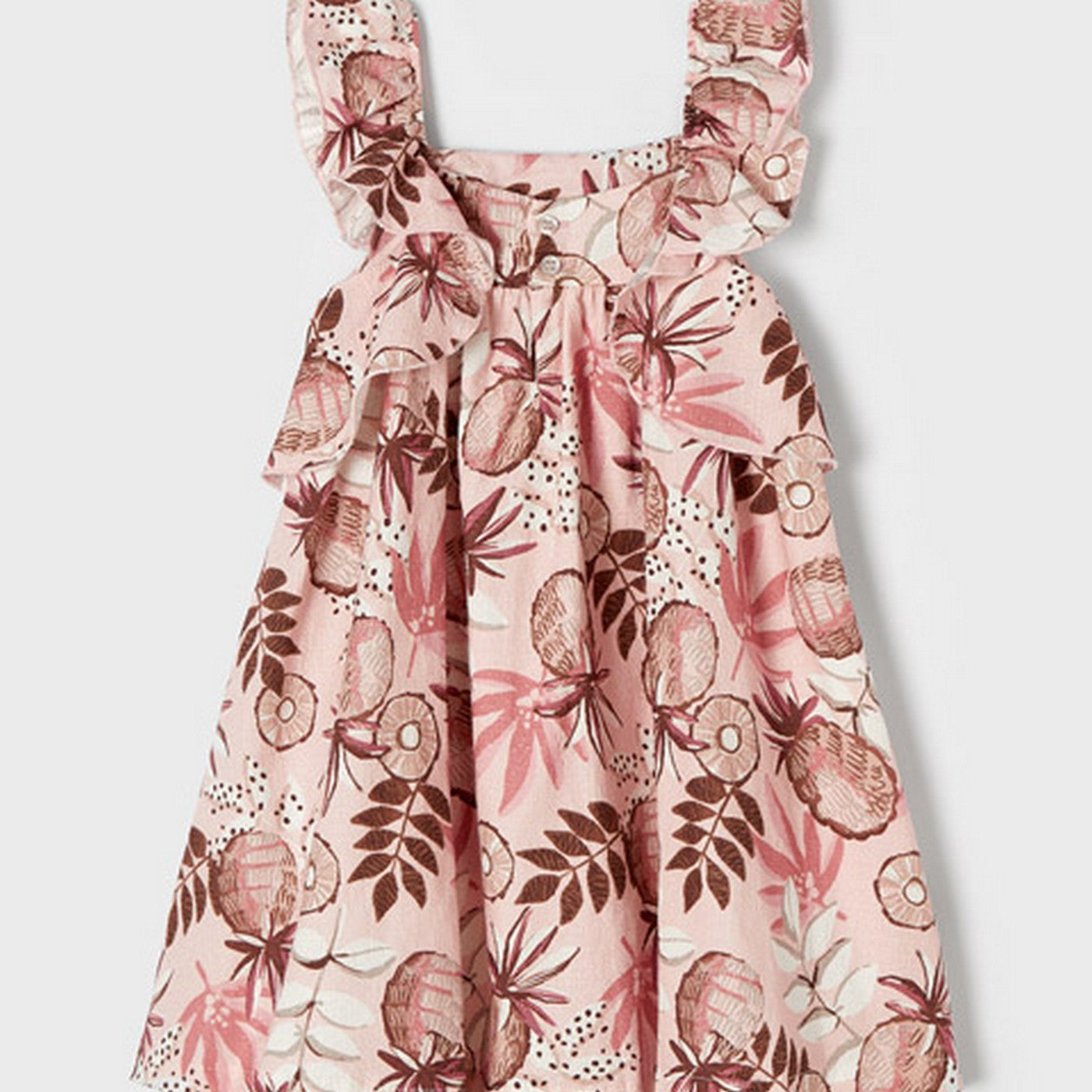 Ärmelloses Kleid in Altrosa mit Ananas-Prints.