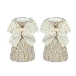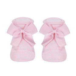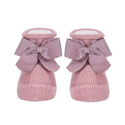 Kinderhausschuh mit Rouléfaust und Ripsbandschleife.