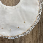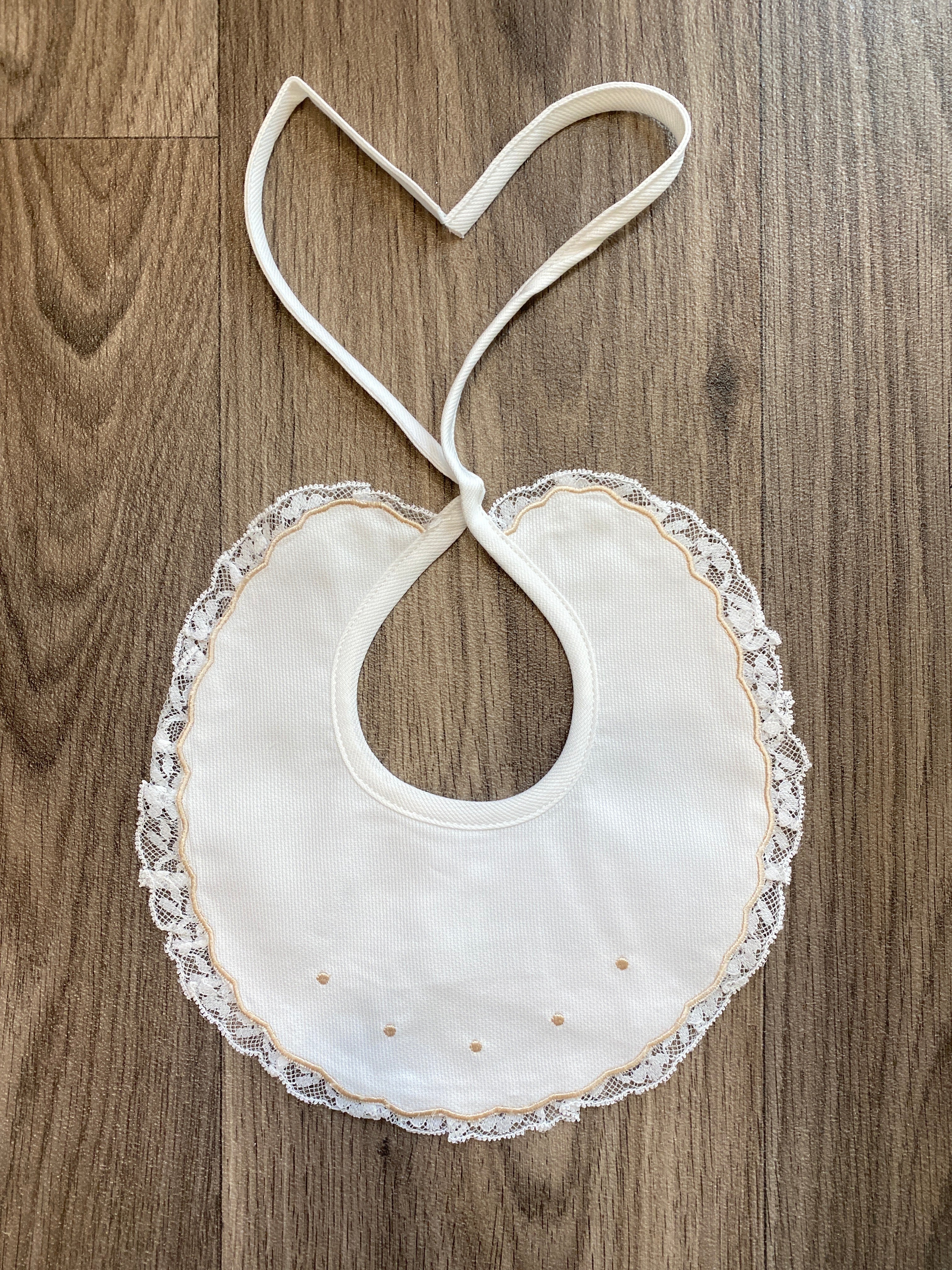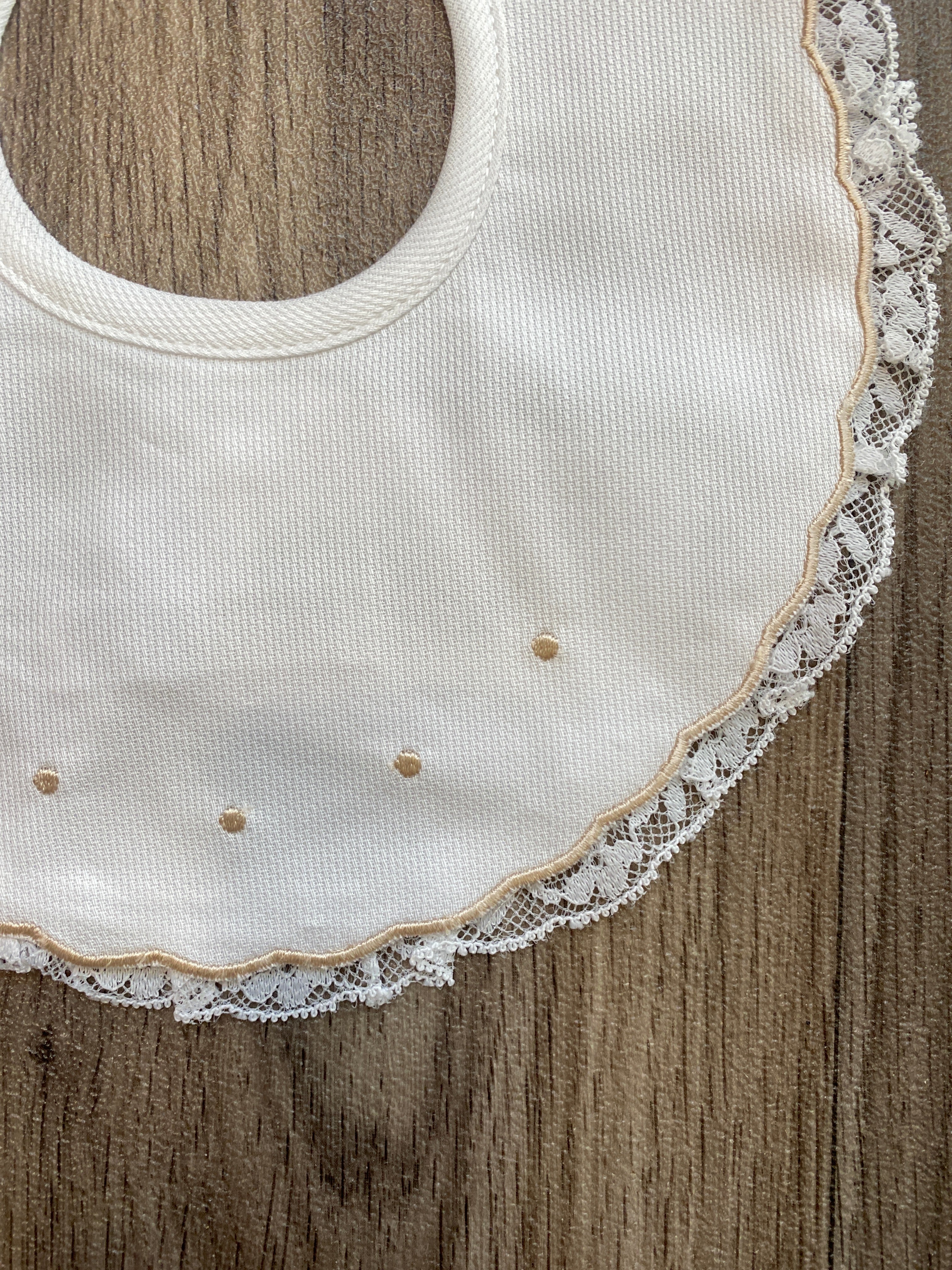 Questa bavetta in piquet con ricamo e pizzo valencienne è perfetta per i neonati. Il ricamo a poise aggiunge un tocco di eleganza e dolcezza. Disegnata e realizzata con cura dalla Sartoria dei Piccoli.