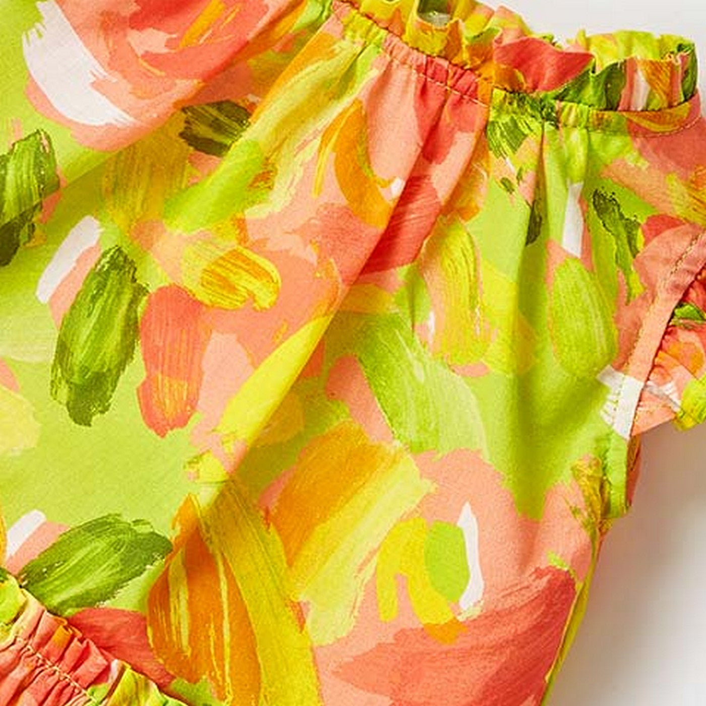 Ärmellose Baumwollbluse mit mehrfarbigem Aufdruck.
