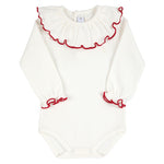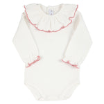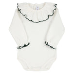 Questo body in caldo cotone per neonata, completo di collo a rouche e profilo colorato, unisce stile e comodità. Ideale per completare ogni look, offre un comfort ottimale grazie al tessuto caldo e morbido, perfetto per mantenere la pelle delicata della tua piccola sempre protetta e avvolta. Pratico da indossare, è una scelta esperta per vestire la tua bambina con eleganza e cura.