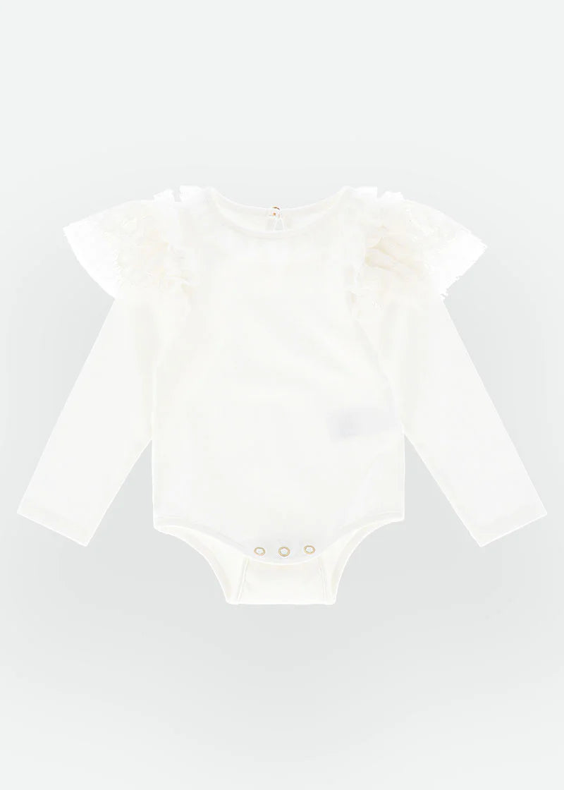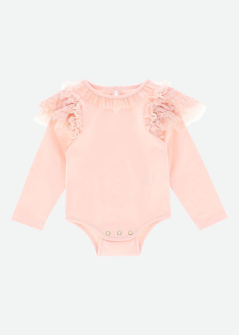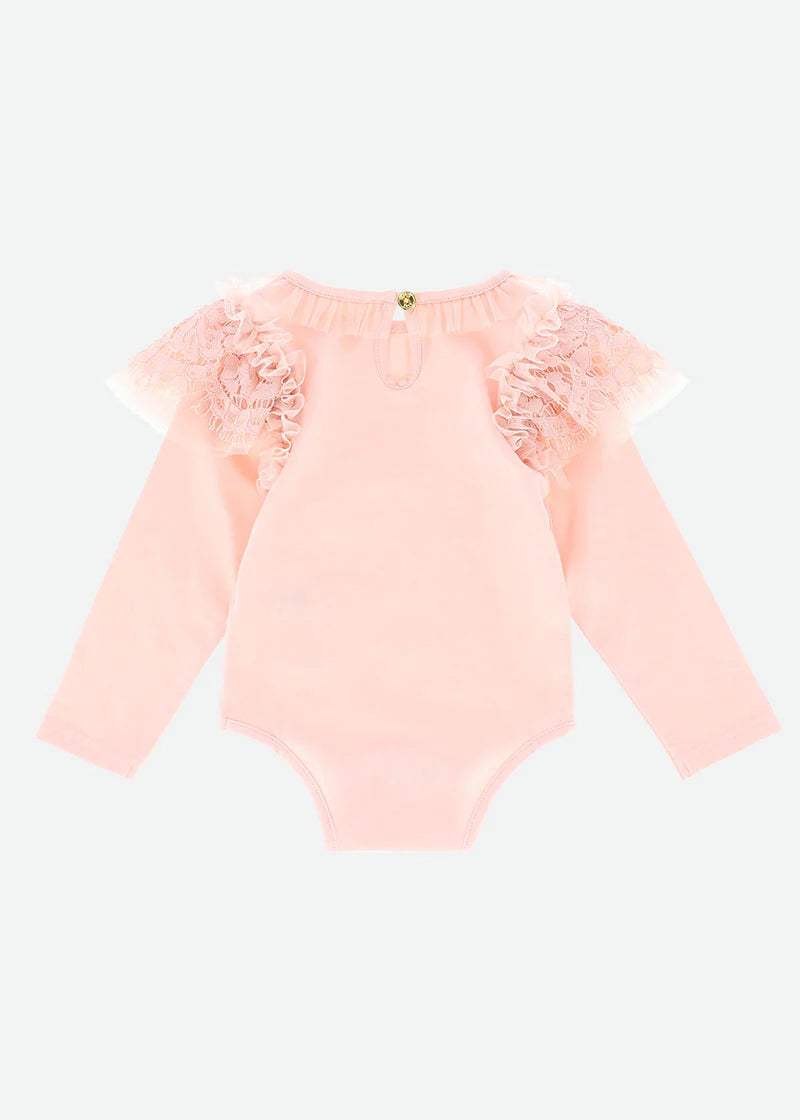 Der warme Baumwoll-Body mit Spitze von ANGEL'S FACE PRIMROSE für Baby-Mädchen bietet dank seiner Zusammensetzung aus 95 % elastischer Baumwolle und 5 % Elastan unvergleichlichen Komfort.