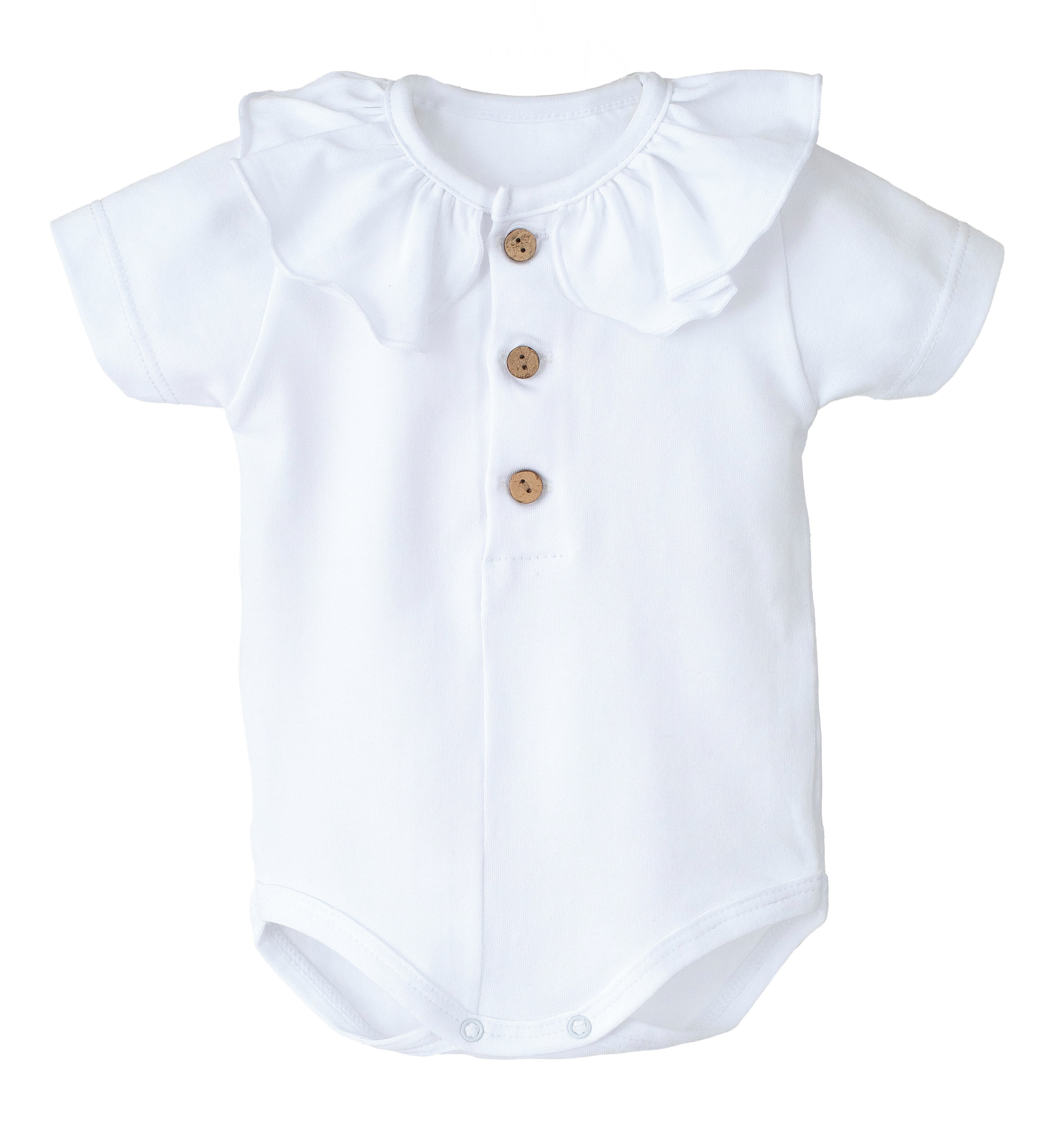 Halbarm-Baumwoll-Bodysuit mit Rouche-Kragen Neugeborenes CALAMARO 19068