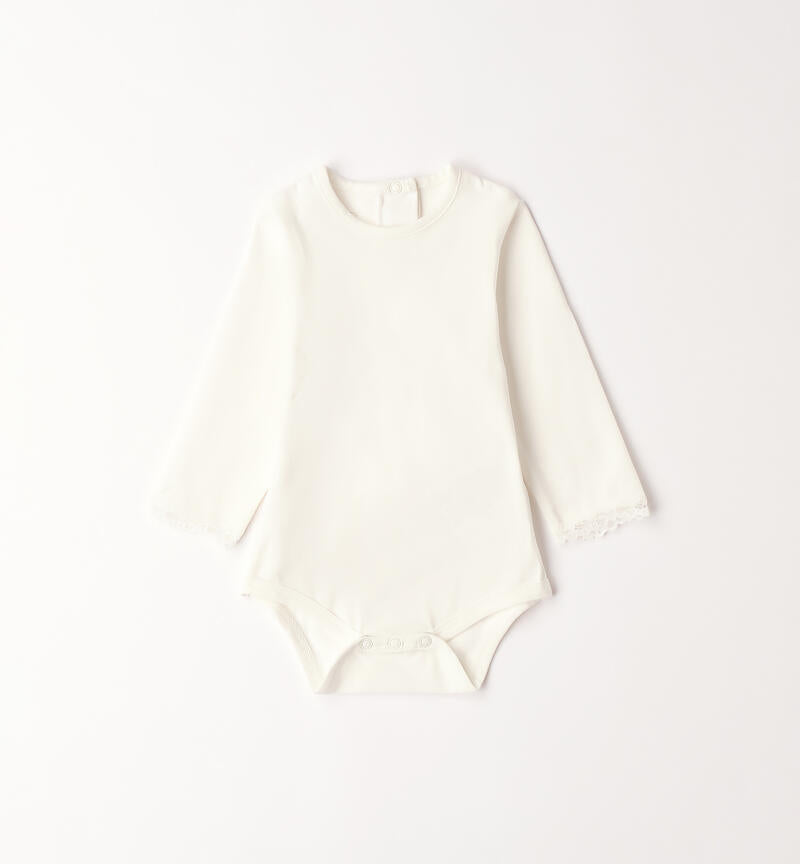 Body a manica lunga per neonata Minibanda realizzato in jersey stretch di cotone con dettagli in trina. Apertura dietro e nel sottogamba con bottoni a pressione. Scegliendo i nostri prodotti in cotone, sostieni l'impegno di Minibanda nella missione Better Cotton. La fornitura di questo prodotto avviene tramite un sistema di bilancio di massa e potrebbe non contenere Better Cotton.