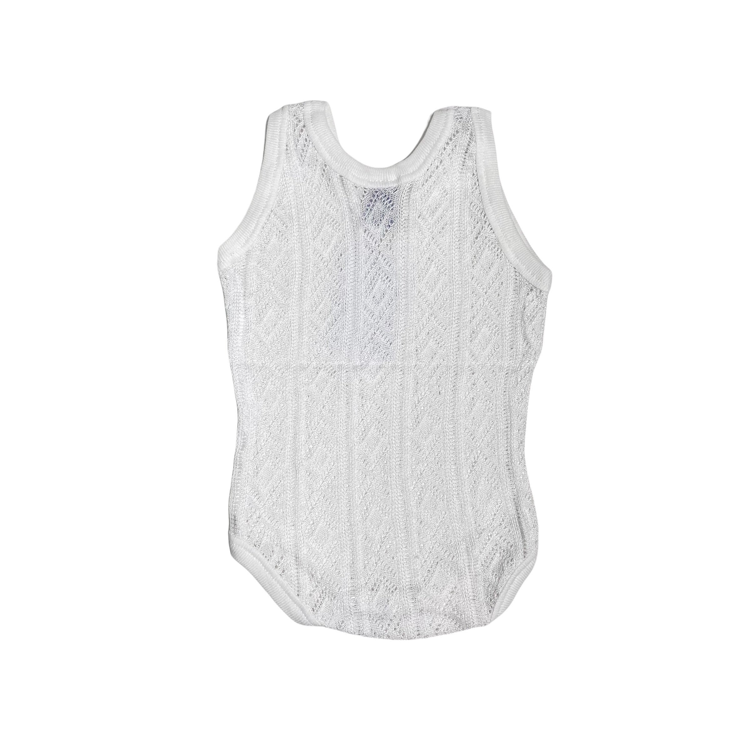 Body mit breiter Schulter aus weißer, mit Rauten durchbohrter Baumwolle