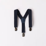 Bretelle per bambino Sarabanda realizzate in tessuto elastico. Il modello presenta chiusure a clip in metallo e rinforzo dorsale sul retro. Le bretelle sono regolabili e fanno parte della collezione S Premium Sarabanda pensata per vestire le cerimonie più formali dei bambini