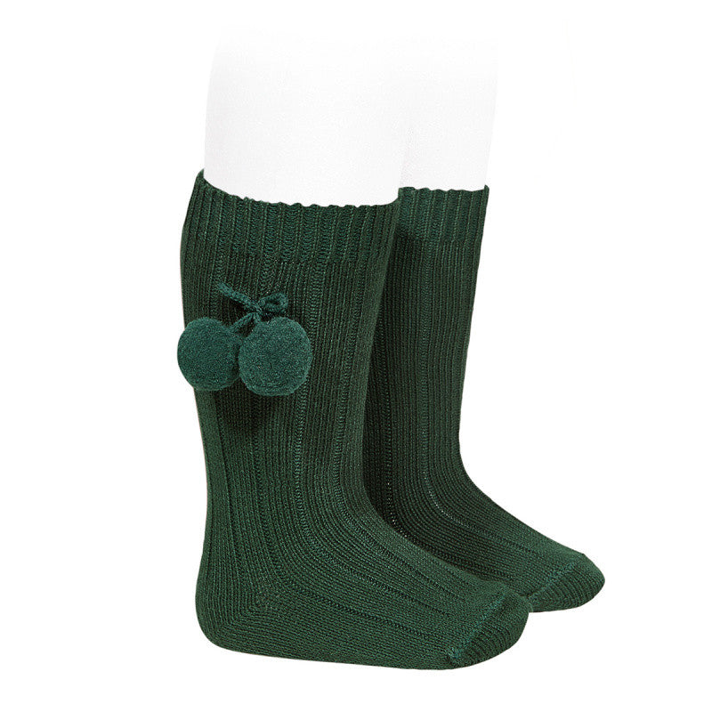 Lange Socken aus warmer gerippter Baumwolle mit Bommel.