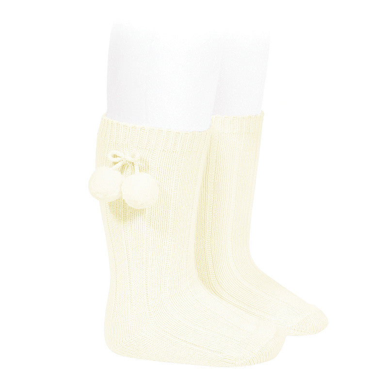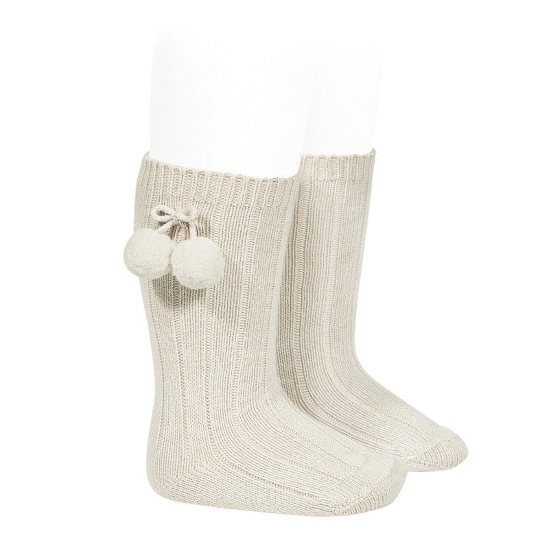 Calze Lunghe a Coste Caldo Cotone e Pompon Neonata/o CONDOR 3015 - Condor - LuxuryKids