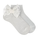 Questo calzino elegante corto in filo di cotone è perfetto per la tua bambina. Il calzino è arricchito da un grazioso fiocco in pizzo, che dona un tocco di eleganza e dolcezza al suo outfit. Realizzato con materiali di alta qualità, garantisce comfort e resistenza per le piccole e delicate piedini della tua bambina.