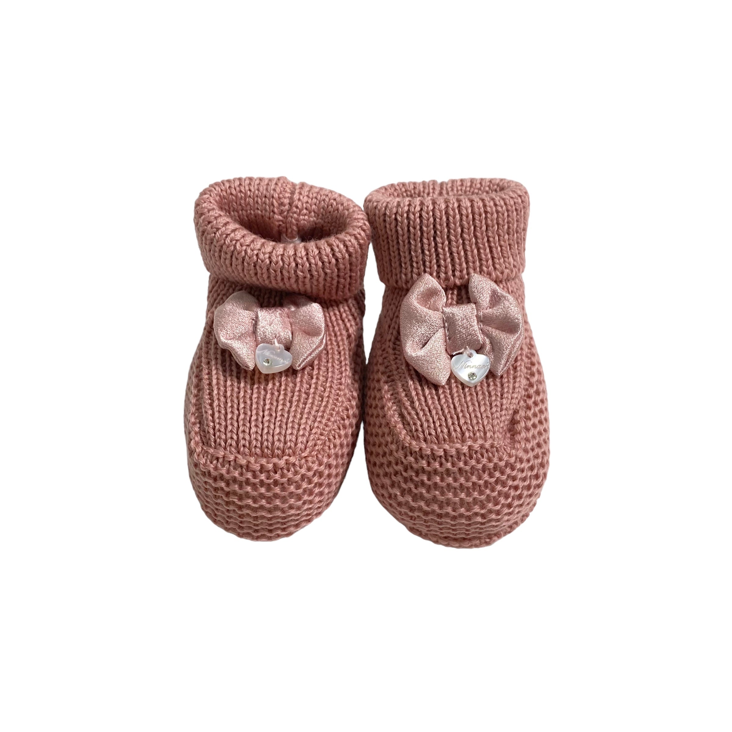 Slipper-Socken aus 100 % Schurwolle, in schlichtem Altrosa, mit Satinschleifen-Applikation.