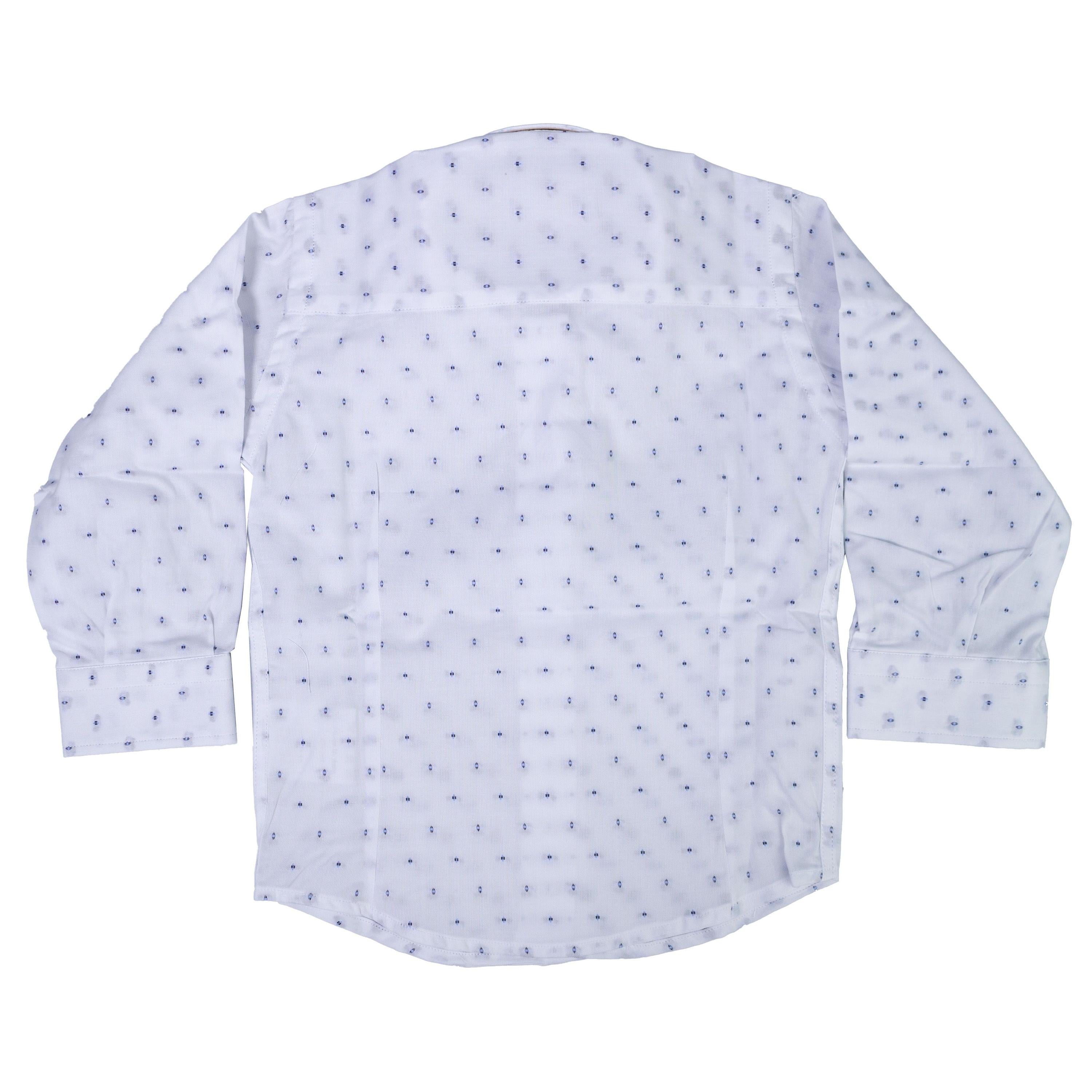 Weißes Baumwollhemd mit blauen Punkten.