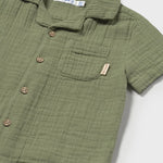 Camicia manica corta per bebé. Chiusura con bottoni nella parte anteriore. Tasca funzionale nella parte anteriore. Scegliendo i nostri prodotti in cotone, supporti il nostro impegno nell'iniziativa Better Cotton.