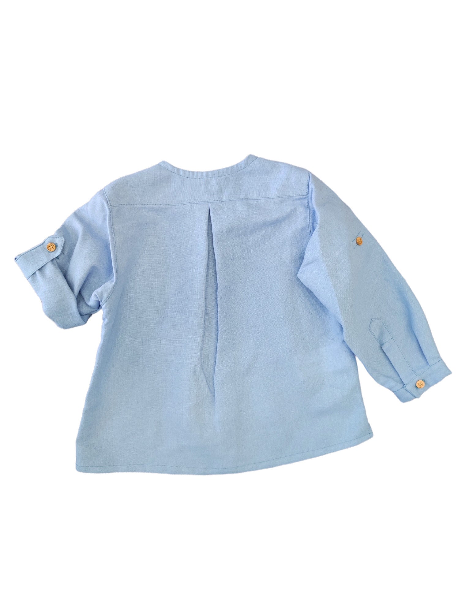 Langärmliges Leinenhemd, das mit Umschlägen zu kurzen Ärmeln werden kann.