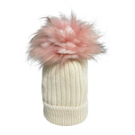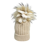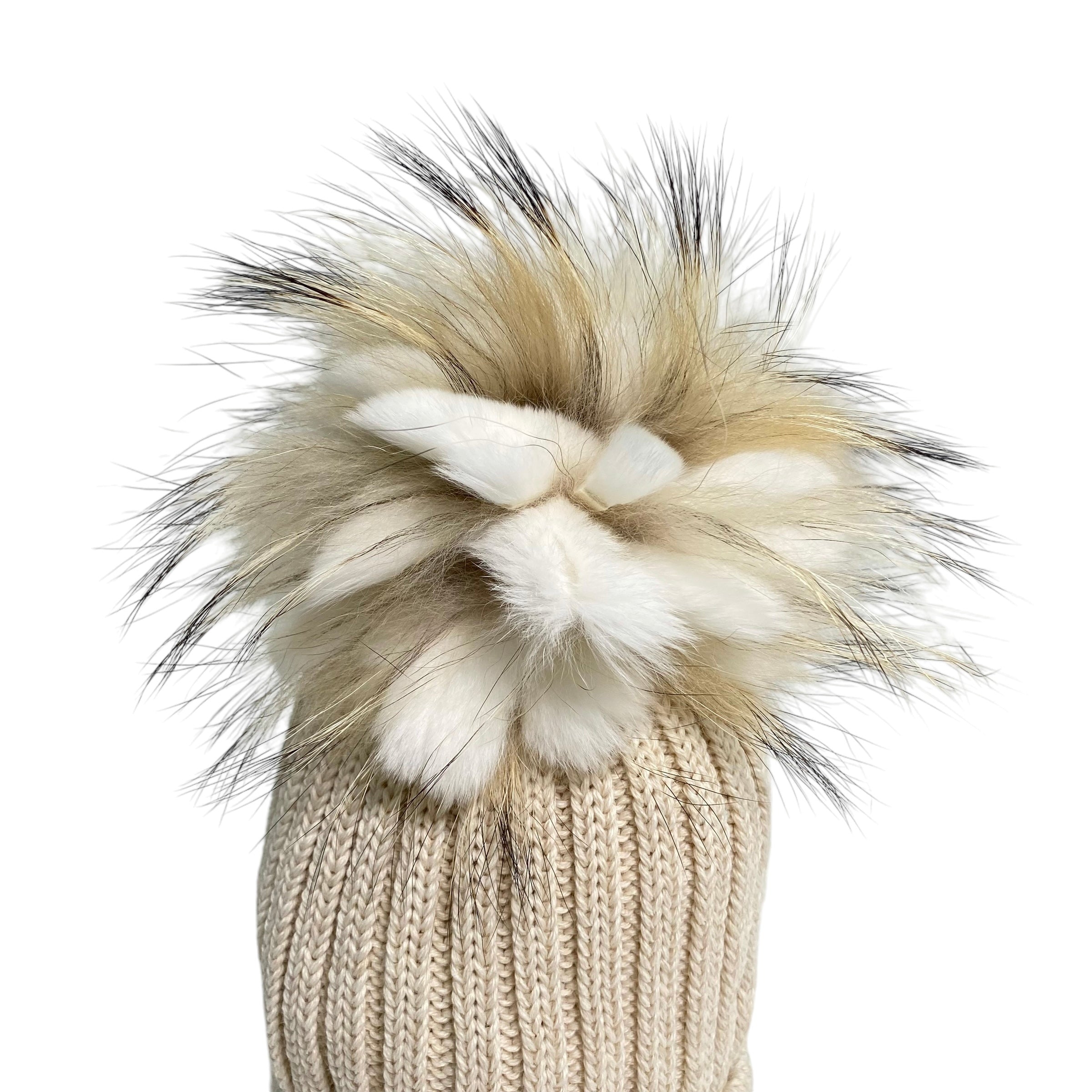 Cappello in misto lana liscio, con risvolto e pom pon in originale in volpe.