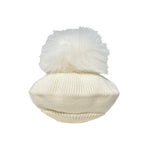 Cappello modello basco in misto lana liscio con pom pon in pelliccia originale.