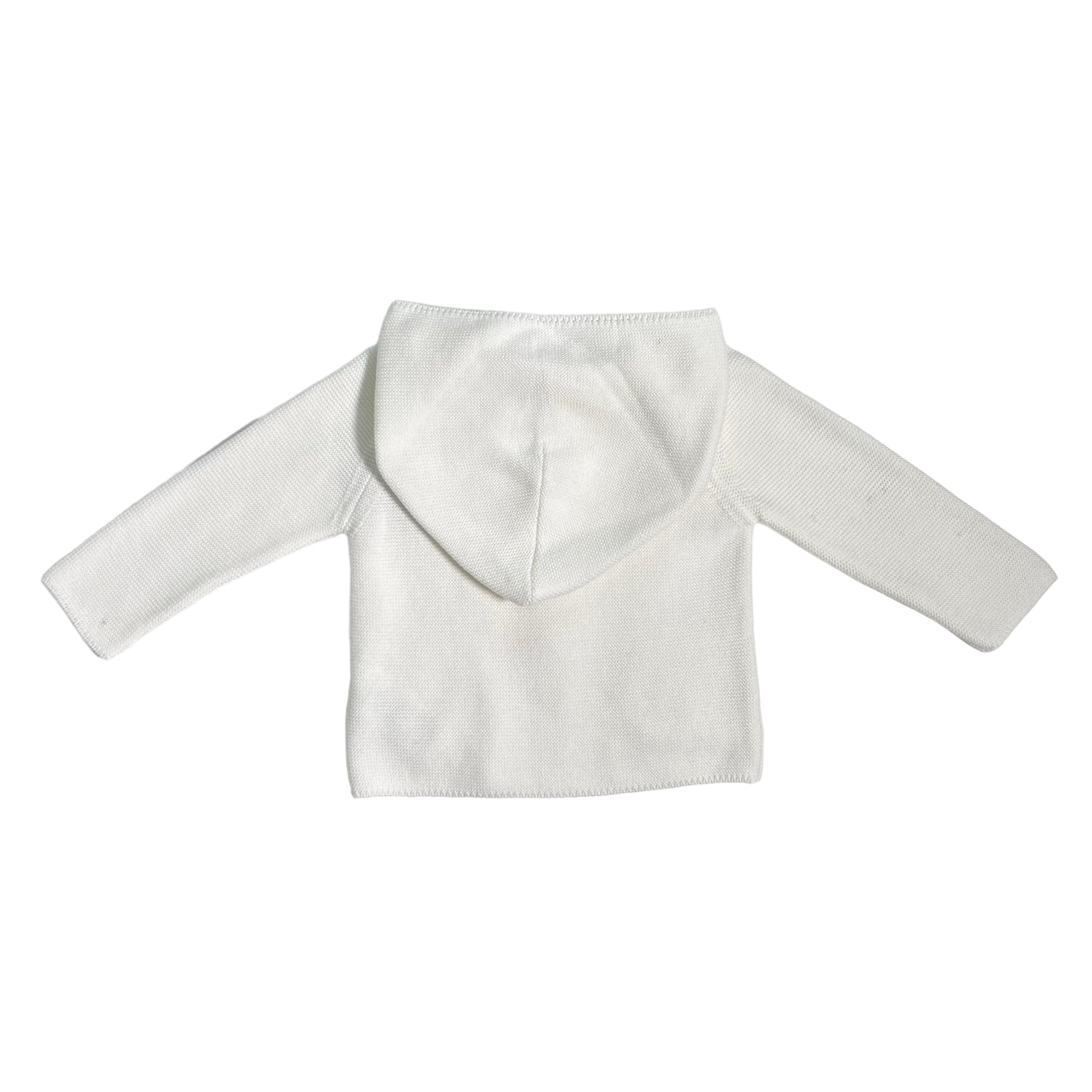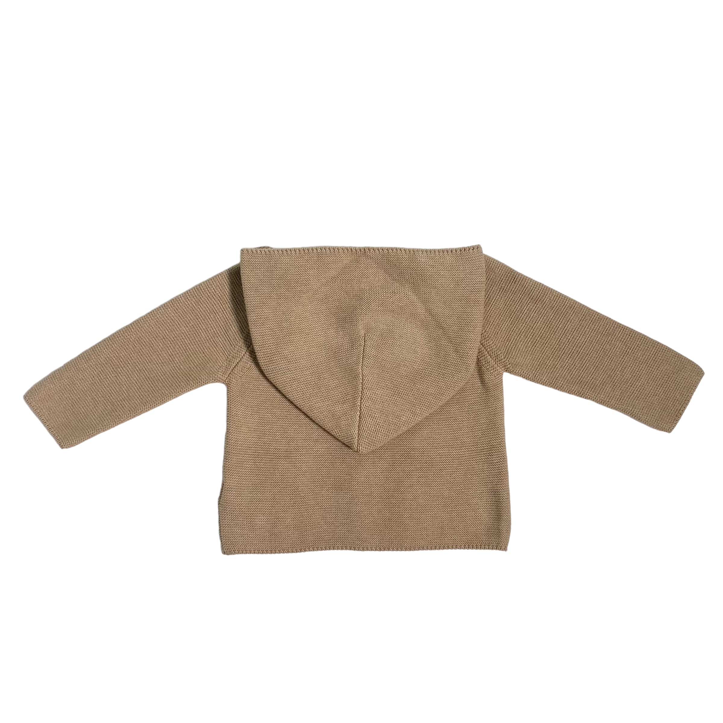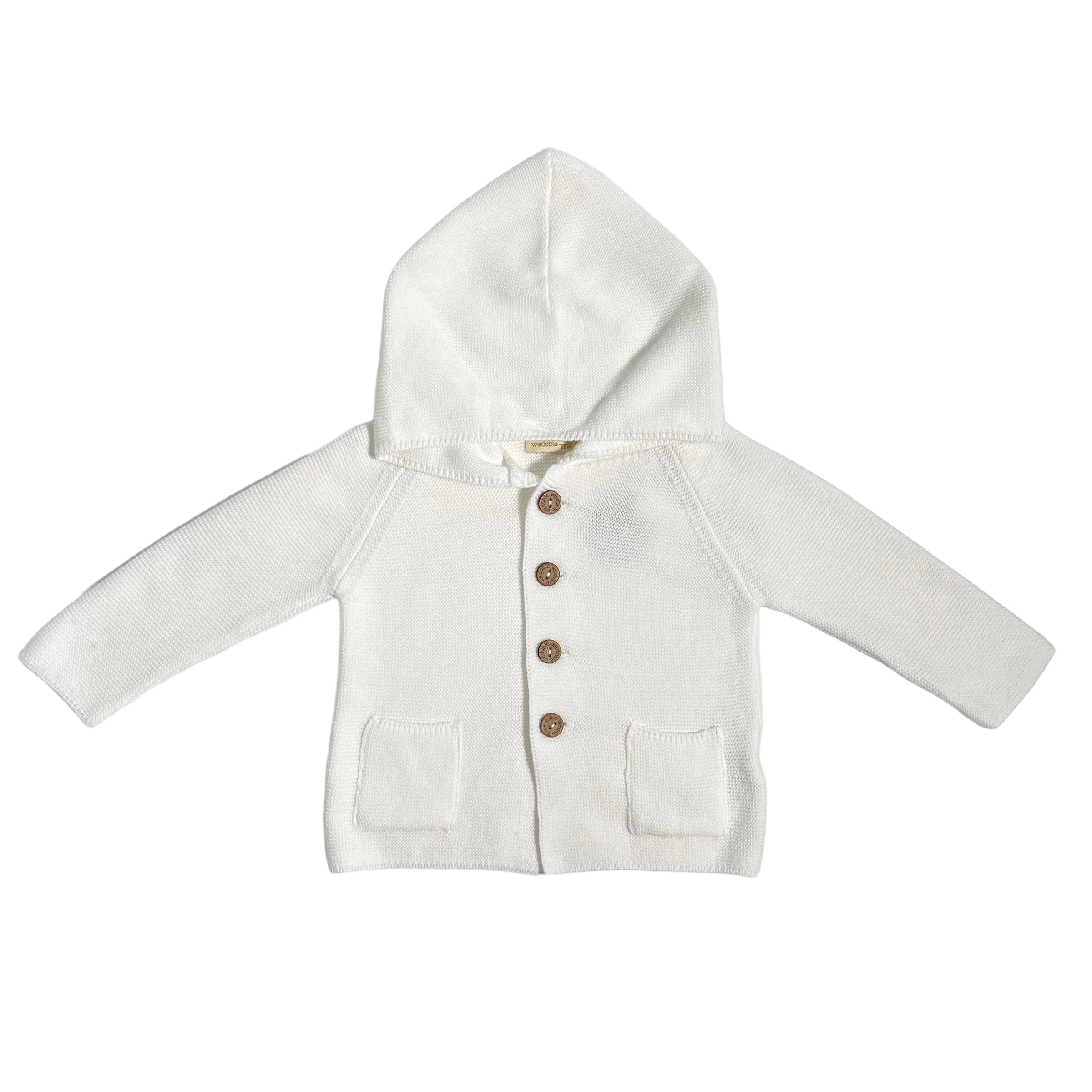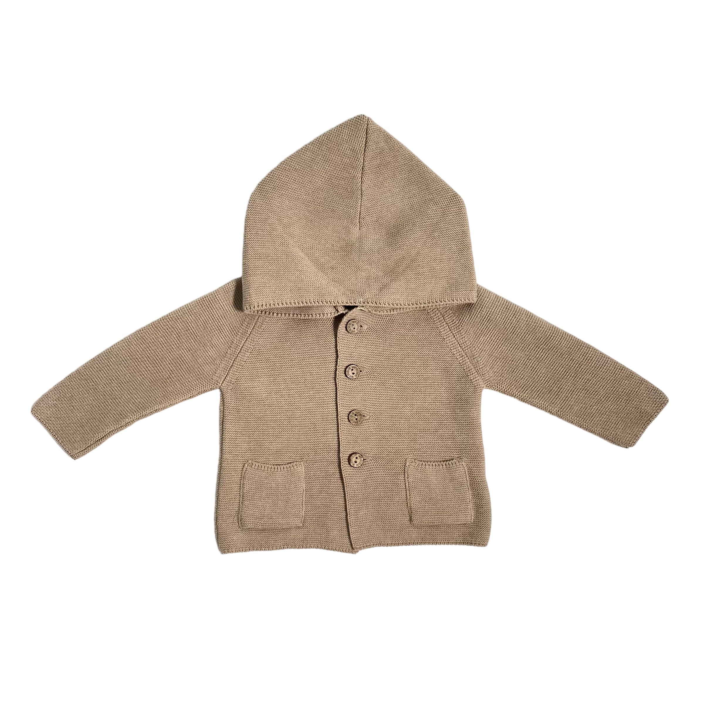 Mantel aus Baumwollgarn mit Kapuze, einfarbig und mit Holzknopfverschluss.