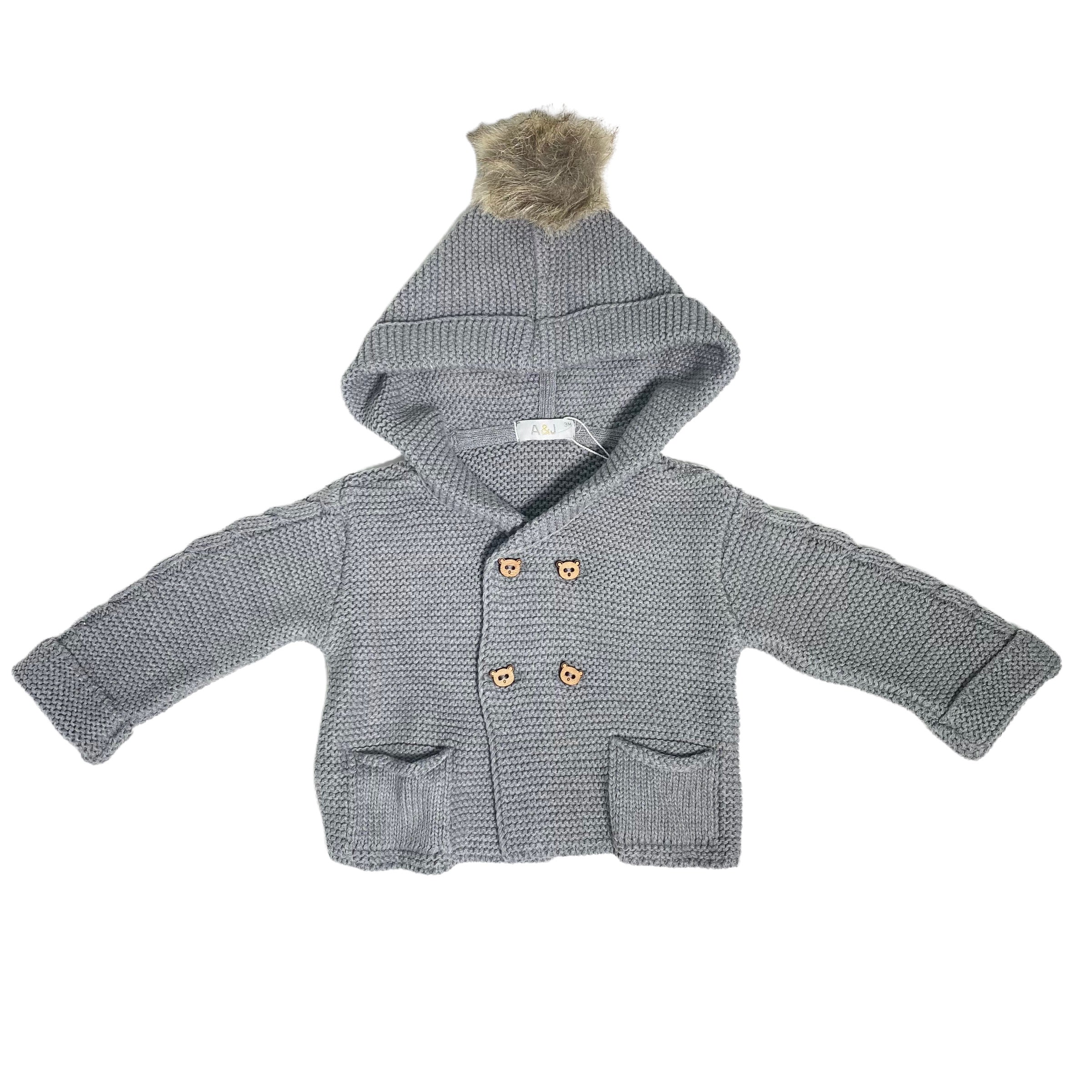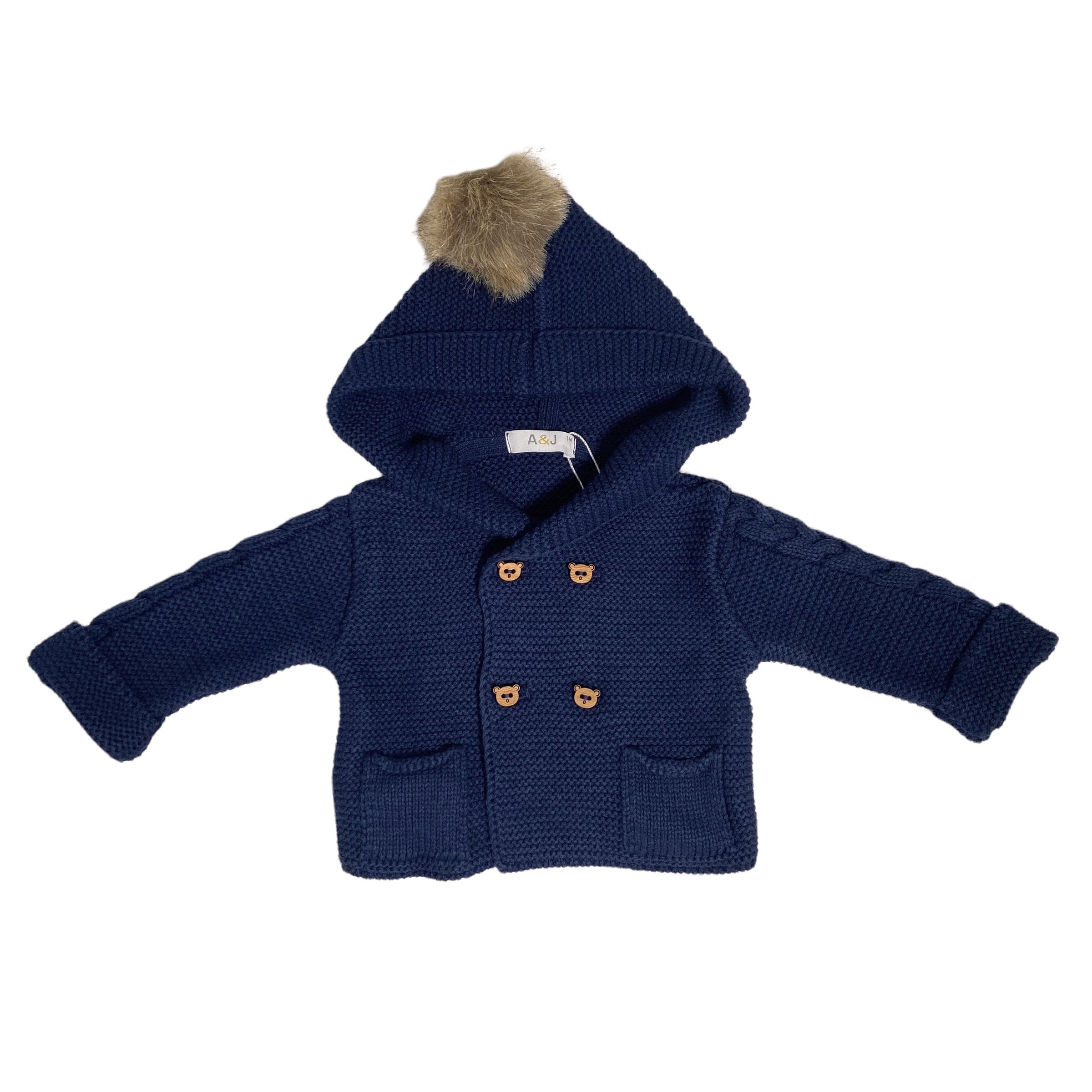 Zweireihiger, ungefütterter Mantel aus warmer Baumwolle mit Kapuze und Teddybärknöpfen aus Holz.