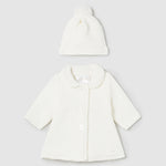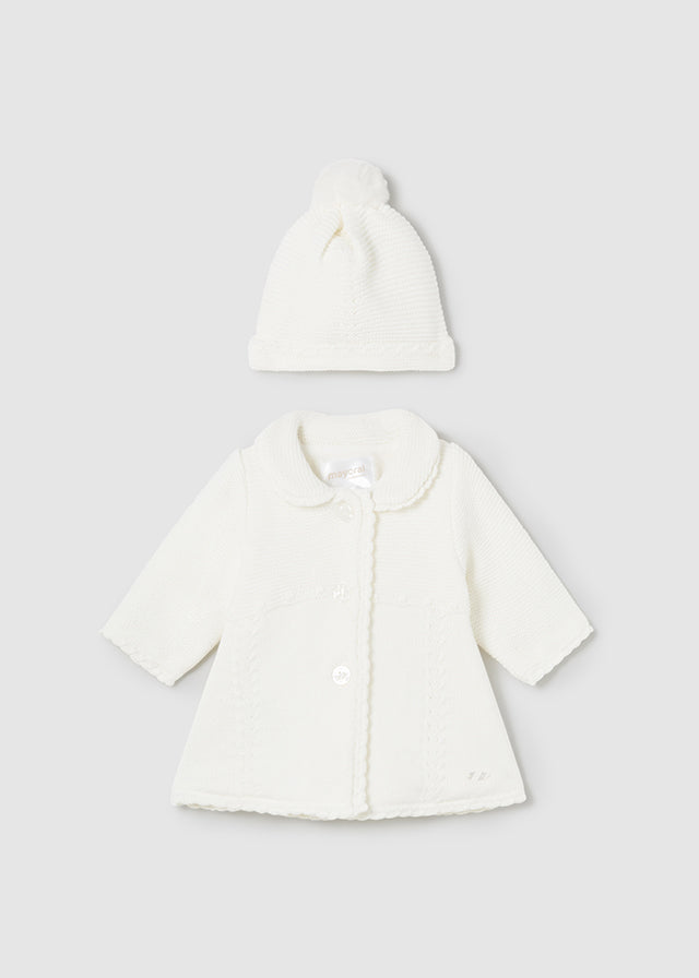 Questo cappotto in maglia con cappello della MAYORAL è elegante, versatile e perfetto sopra gli abiti della tua neonata. Lo stile svasato lo rende comodo e pratico da indossare. Aggiungi un tocco di classe ai suoi outfit con questo capo di alta qualità.