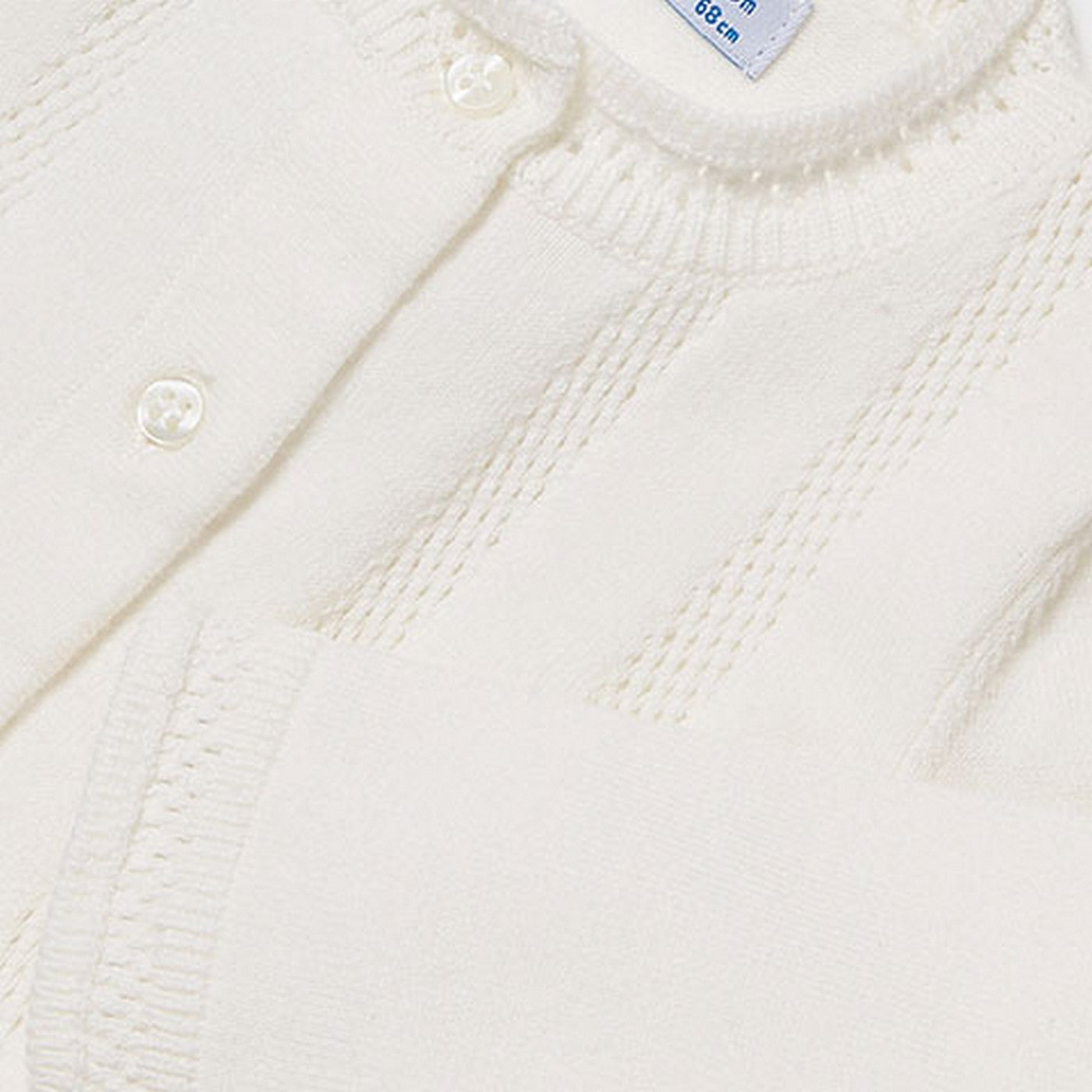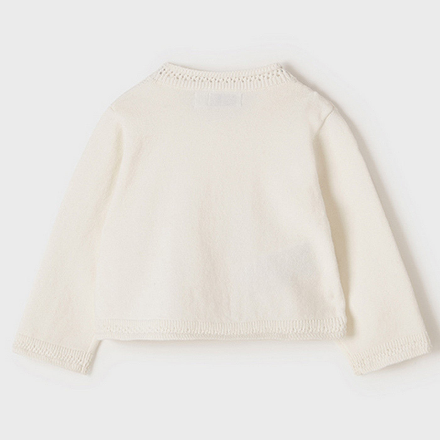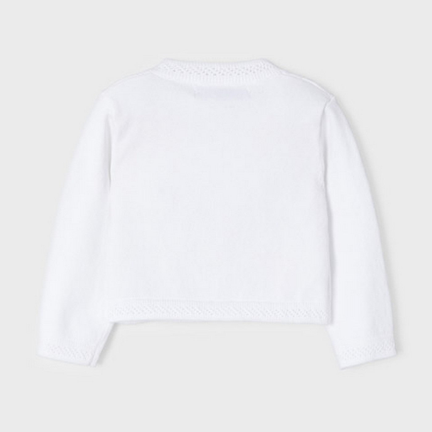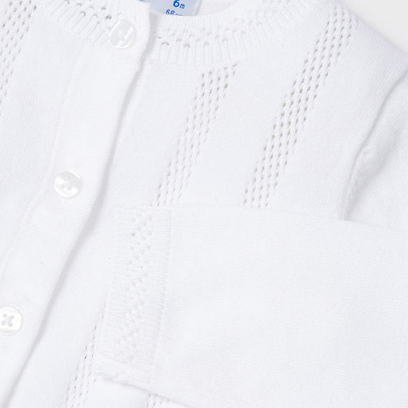 Weiße Baumwolljacke mit besonderen Perforationen auf der Vorderseite.