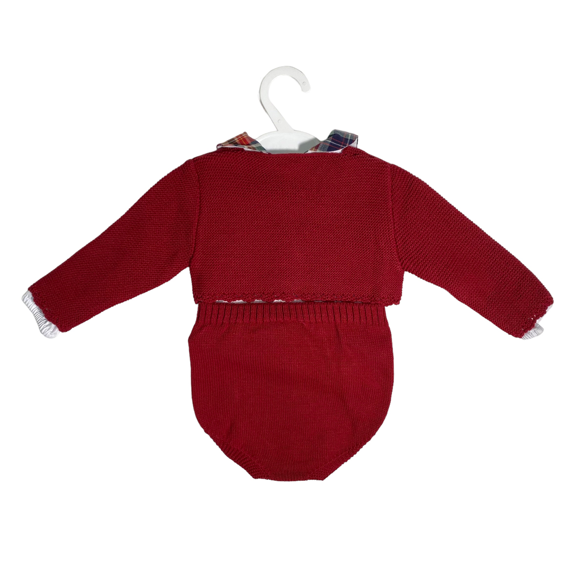 Set bestehend aus einer Culotte aus hypoallergenem Acrylstoff, einem weißen Hemd mit kariertem Kragen und einem kurzen Bolero.