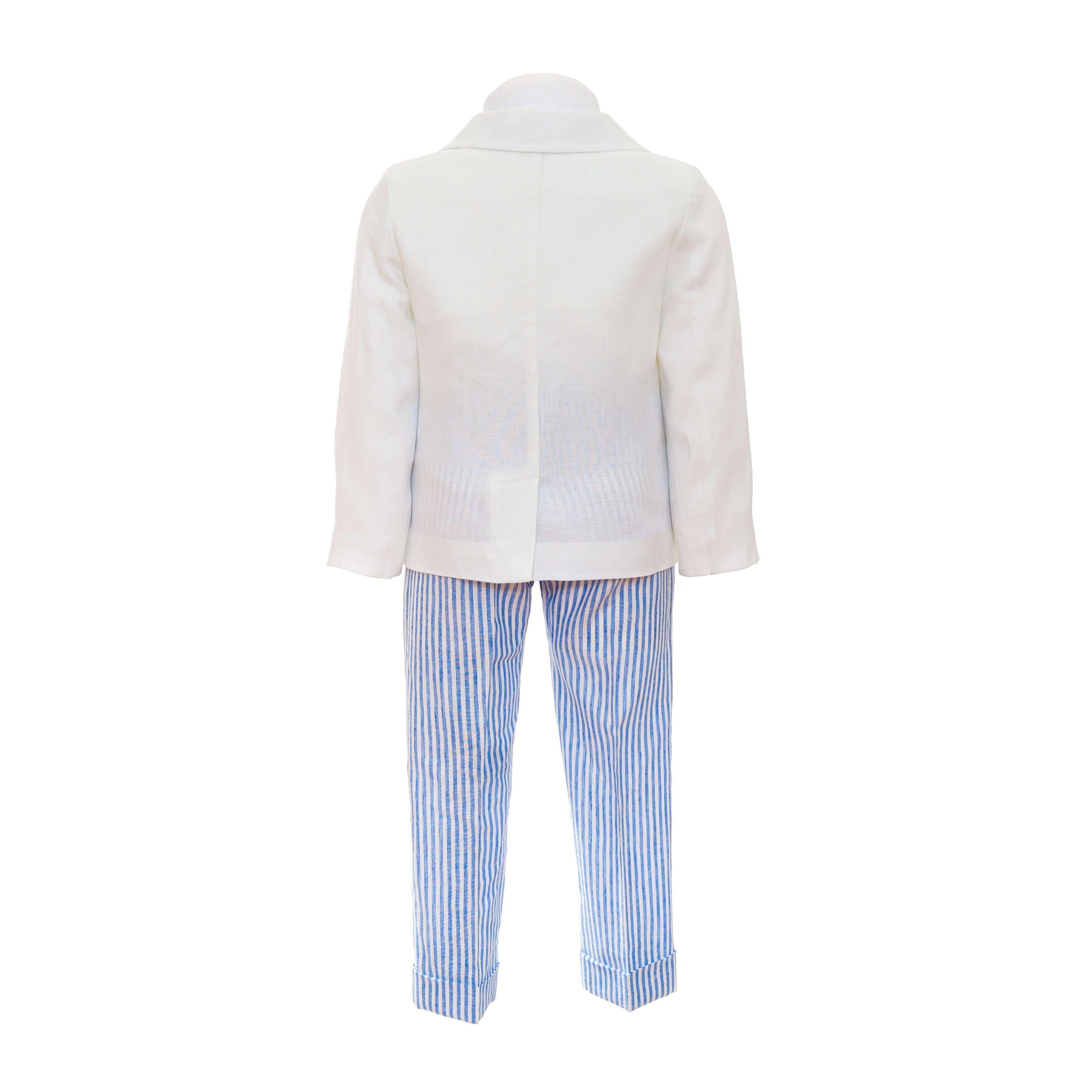 4-teiliger eleganter festlicher Anzug in Weiß und Hellblau, perfekt für jeden Anlass, bestehend aus:
