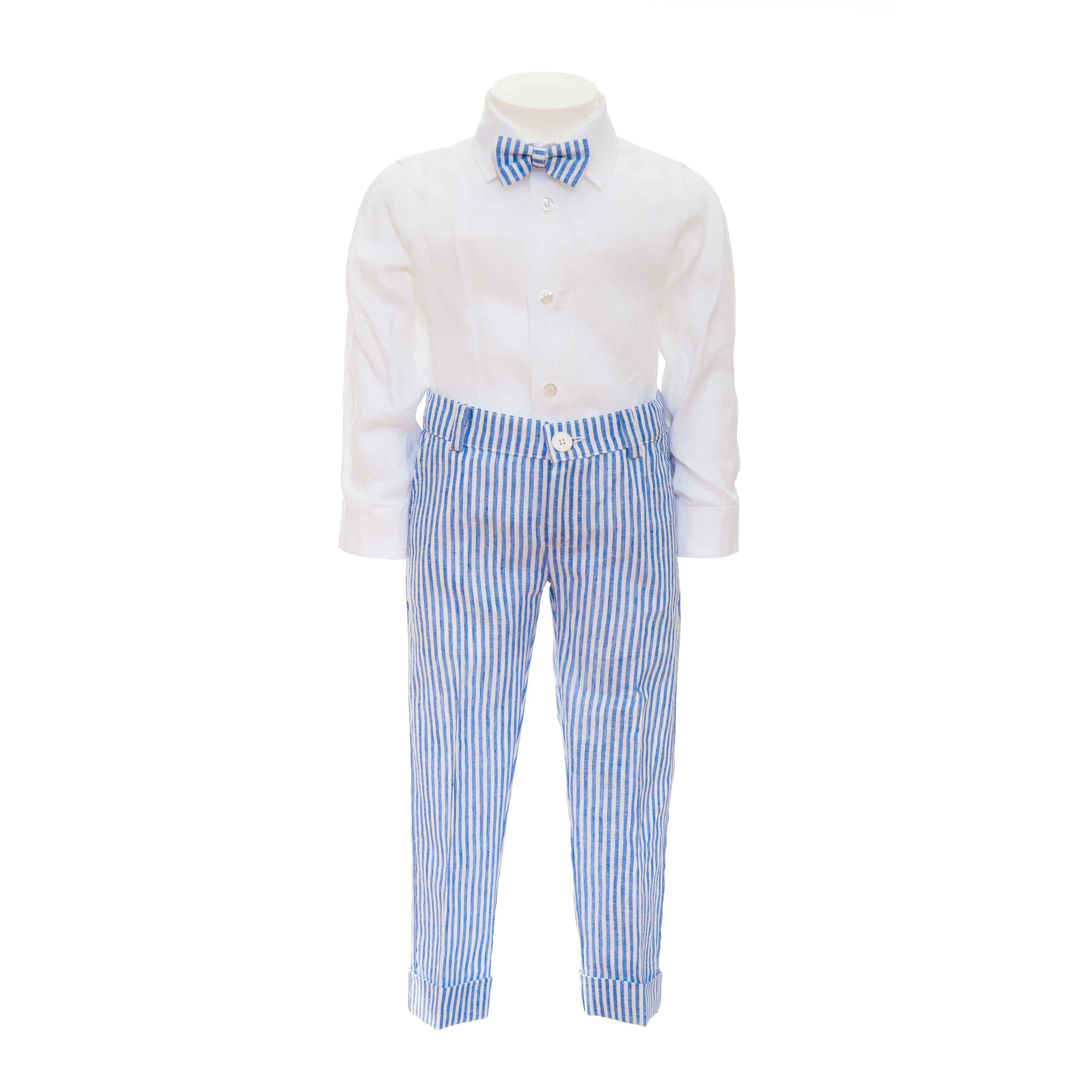 - Lange Hose aus Leinenmischung mit weißen und hellblauen Streifen und elastischem Bund zum Anpassen der Passform
