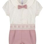 -Halbärmeliges Plumetis-Hemd mit Fliege in der gleichen Farbe und dem gleichen Stoff wie die Bermuda-Shorts