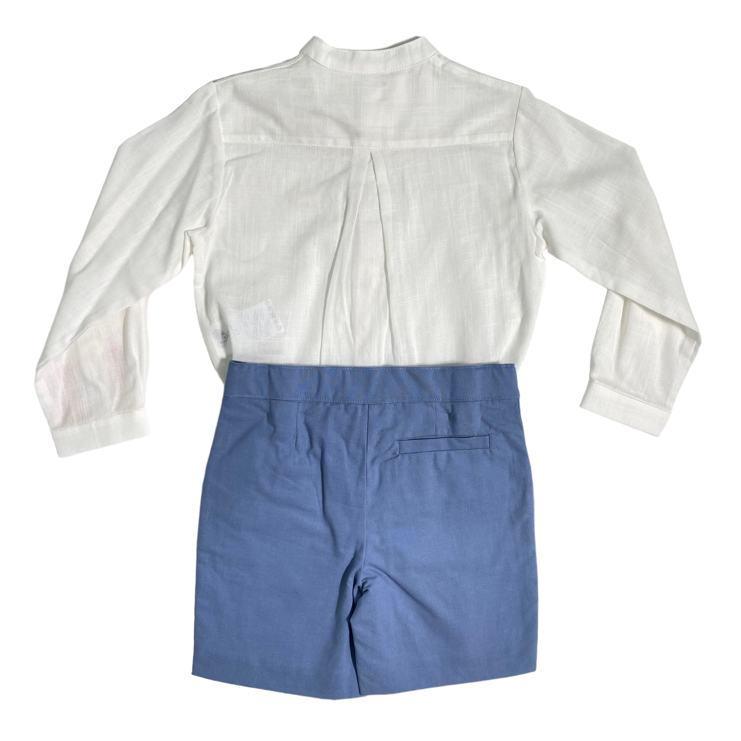 Questo completo elegante è perfetto per il tuo bambino! Include una camicia in lino con collo coreano e bottoncini bianchi, abbinata a un comodo bermuda. Il look ideale per occasioni speciali e piccoli paggetti.