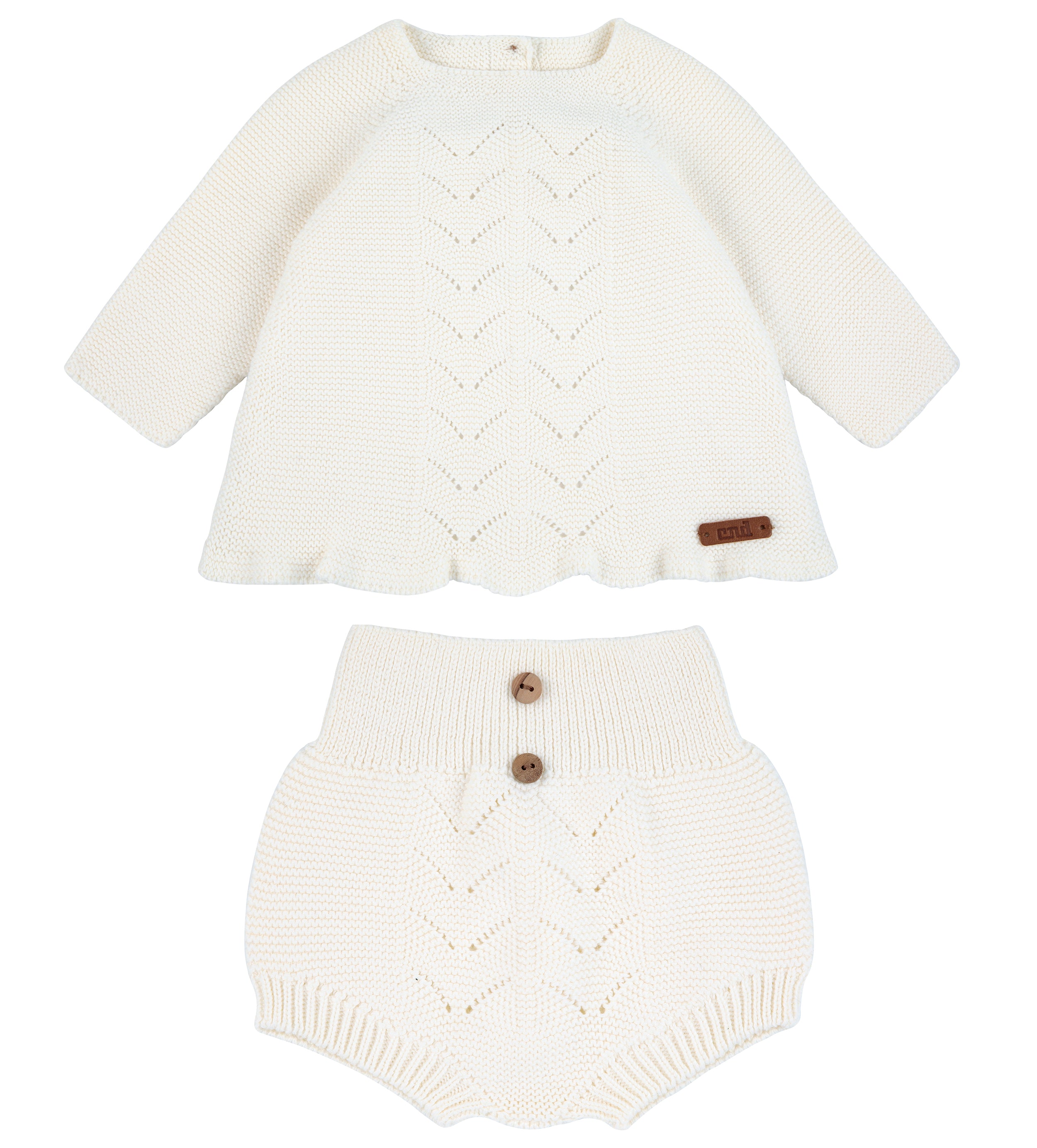 Questo completo elegante in caldo cotone è perfetto per rendere il tuo neonato/a ancora più speciale in ogni occasione. Include una culotte e un maglioncino traforati per un tocco di classe. Ideale per un'occasione speciale o per un outfit quotidiano.