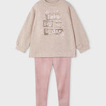 Completo alla moda per bambina con leggings di camoscio e felpa. Elegante e confortevole, il completo MAYORAL è perfetto per ogni occasione, garantendo un look elegante e di tendenza.