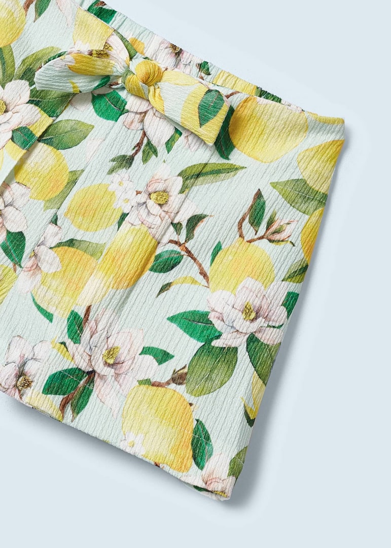 Shorts im Shorts-Stil für Mädchen. Elastischer Bund für eine bessere Passform. Dekorative Elemente: Schleife. Gedrucktes Design.