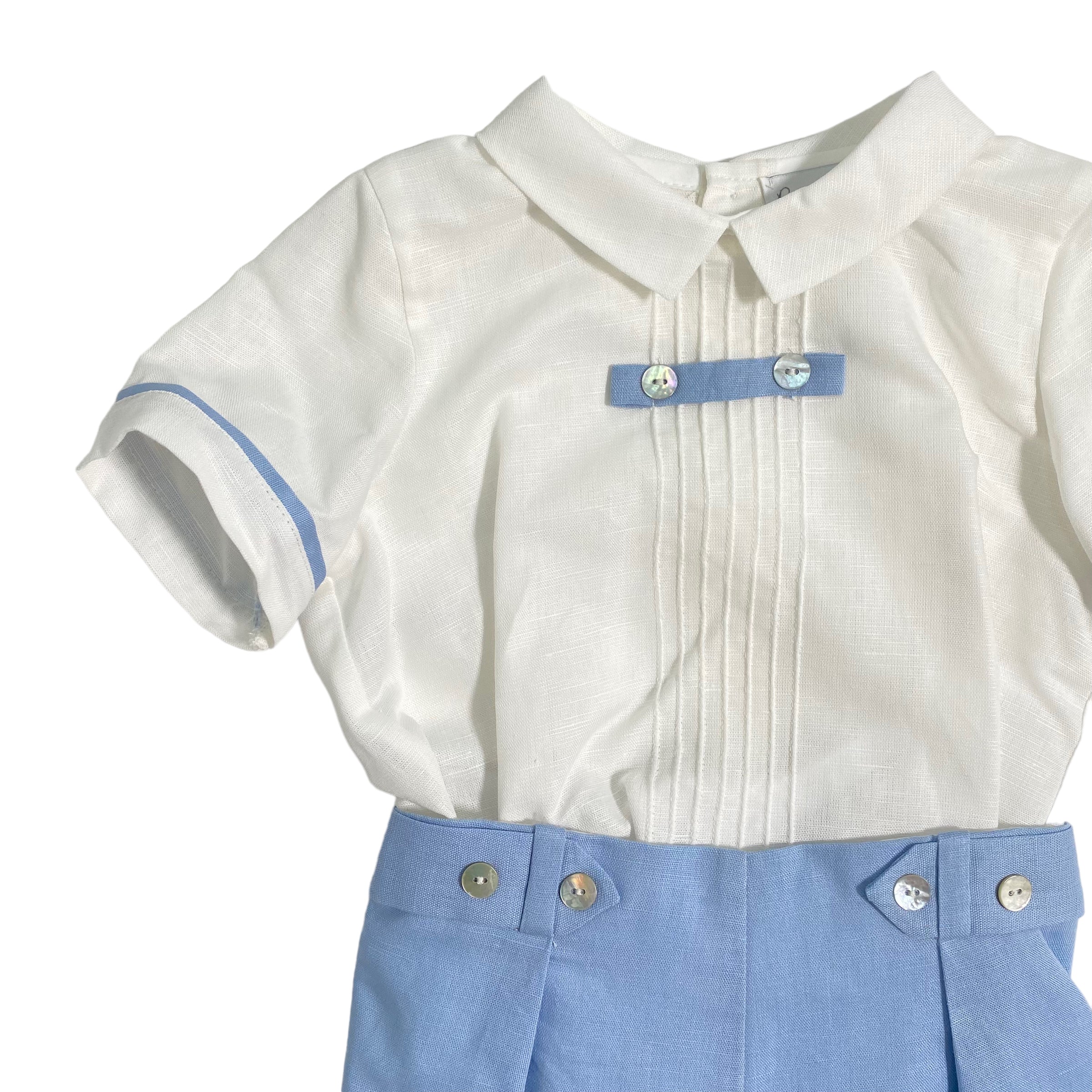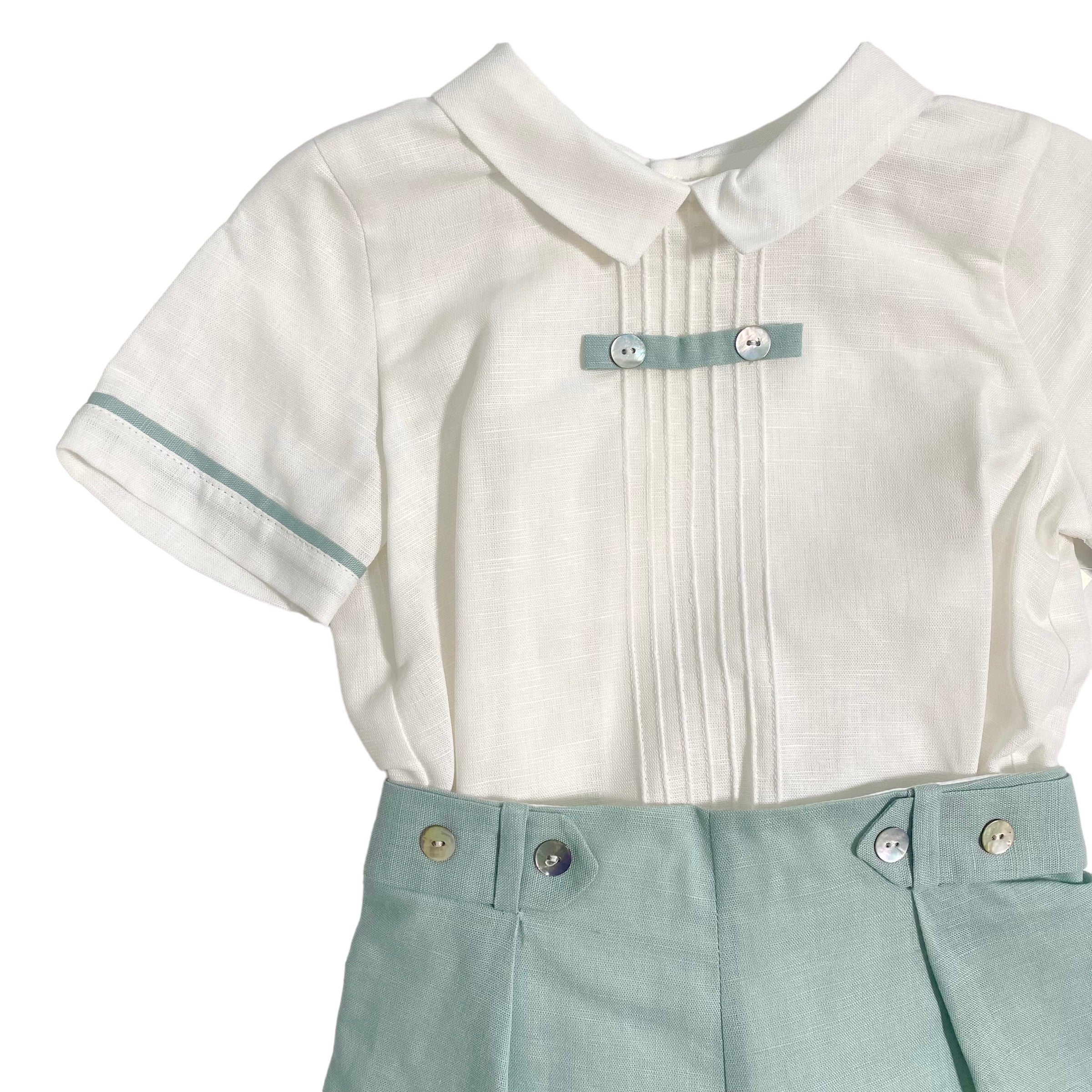 - camicia mezza manica panna, con fascia centrale a righe e applicazione.