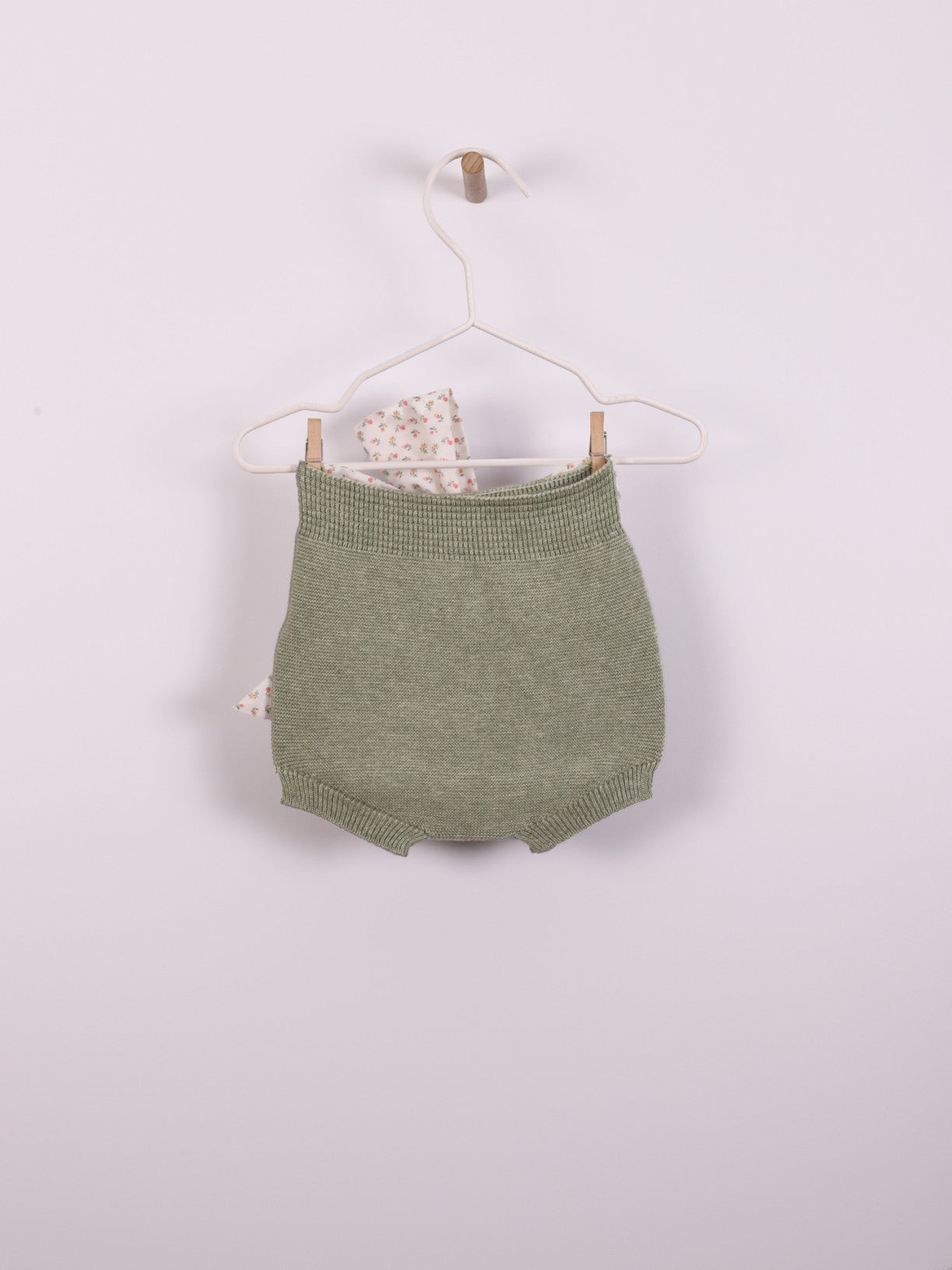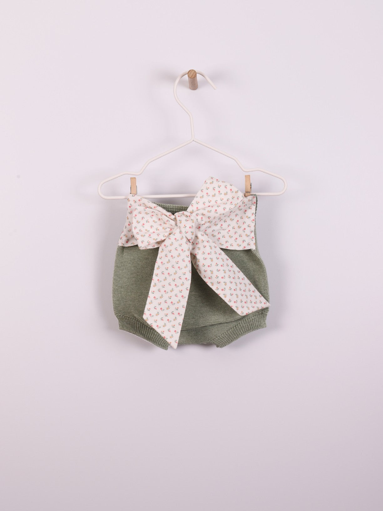 Culotte con fiocco lavorata a maglia in maglia fine di morbido cotone, ideale per neonate. Una graziosa culotte estiva ha un grazioso nastro sul retro in tessuto di cotone leggero con una stampa di fiori botanici. La morbida fascia elastica consente il massimo comfort. Prodotto in Wholegarment, pezzo unico senza cuciture, per il massimo comfort del tuo bambino.