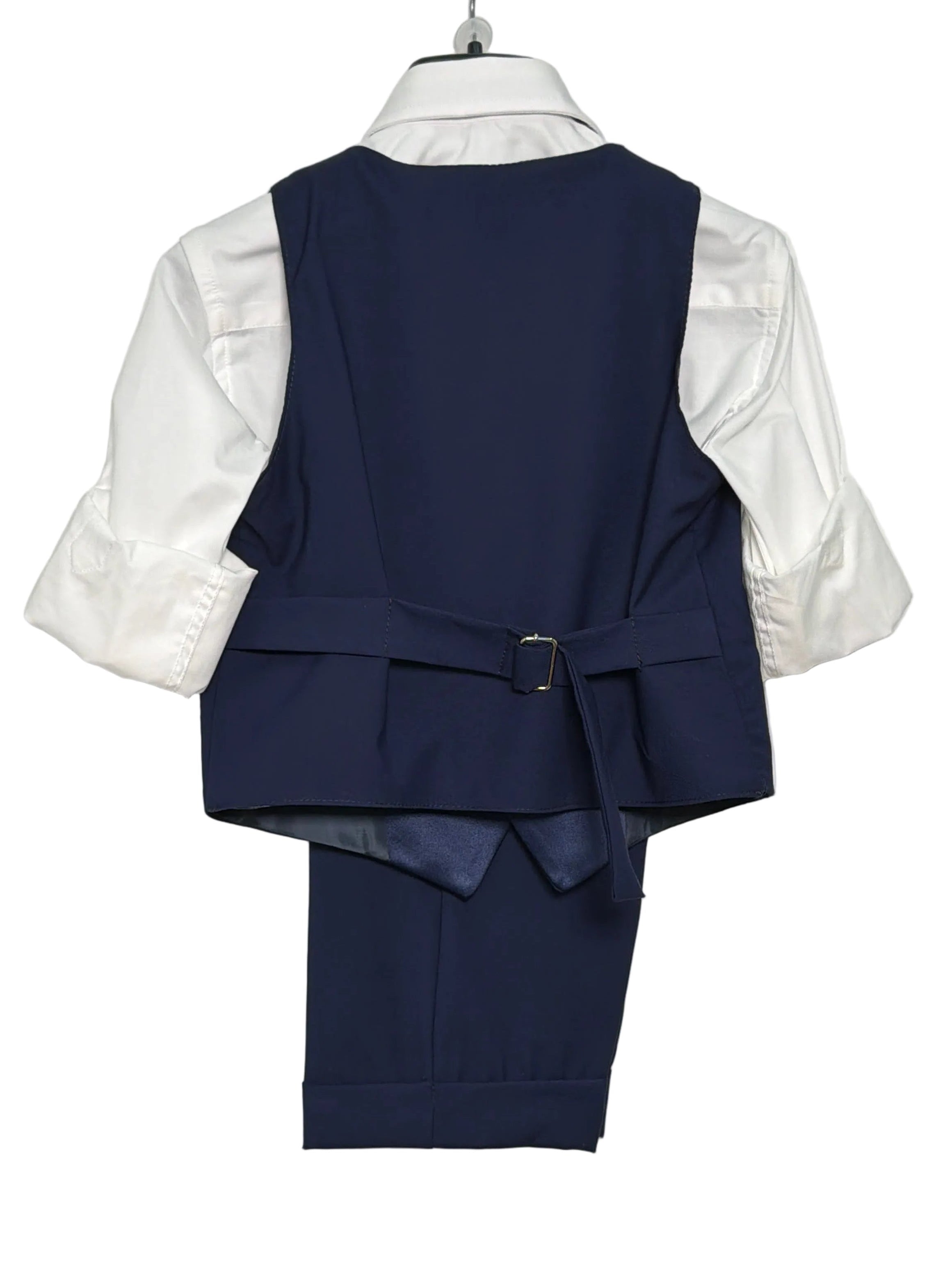 Questo completo elegante per paggetto è composto da bermuda con risvolto, camicia bianca, panciotto e papillon abbinato. Perfetto per far sentire il tuo bambino un piccolo signore il giorno del matrimonio. Con il suo stile raffinato e dettagli curati, garantirà un aspetto elegante e impeccabile.