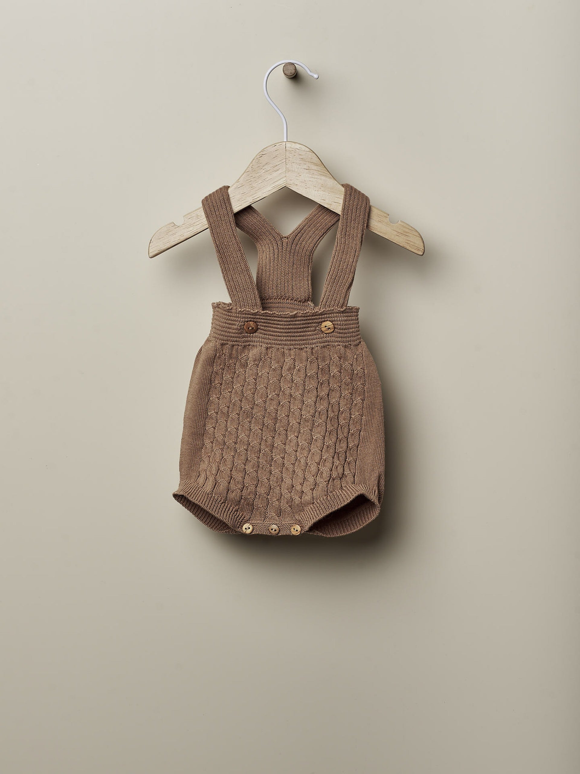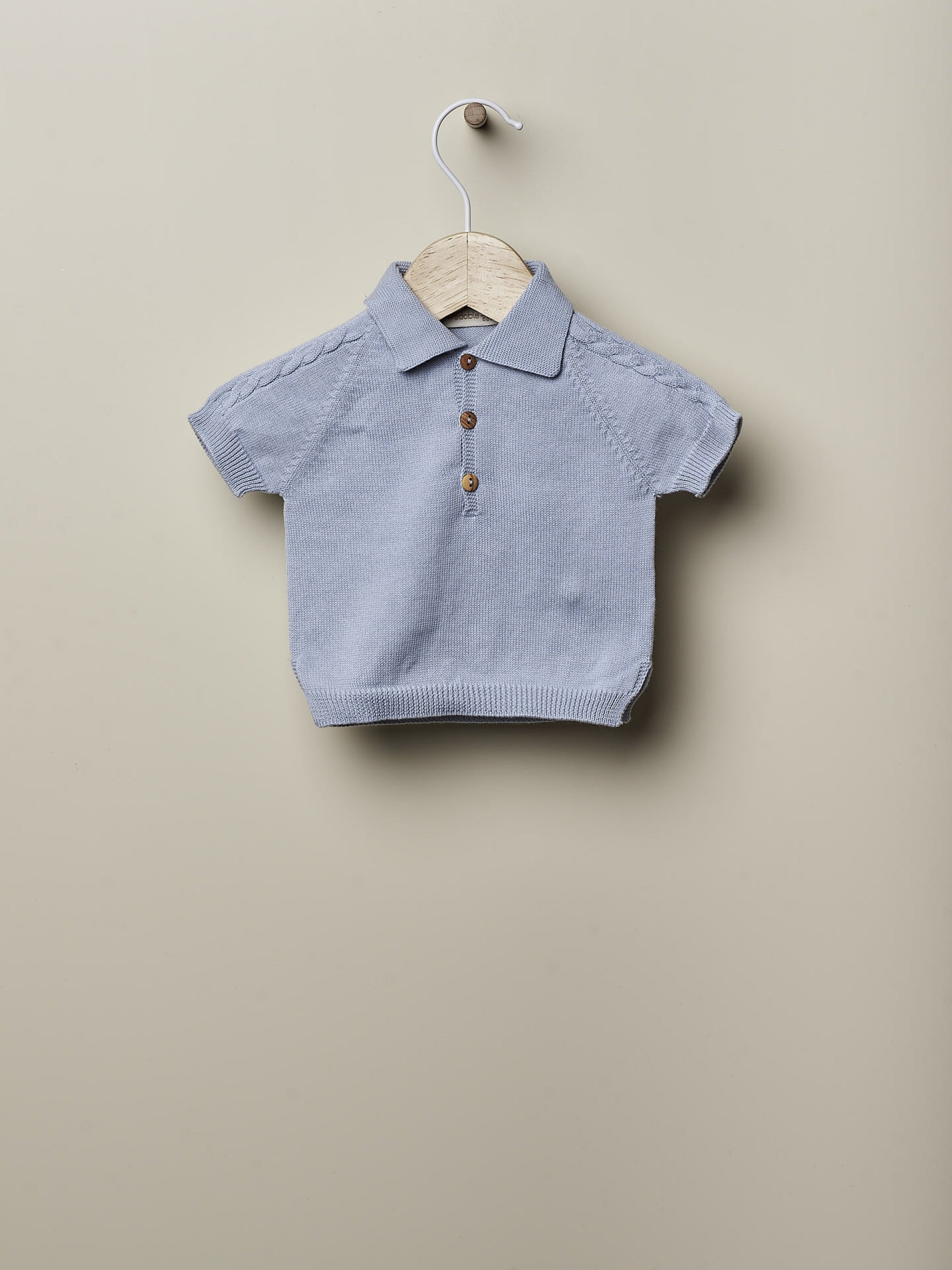 Il completino Wedoble V2404305B è perfetto per il tuo neonato! La culotte in filo marrone presenta una lavorazione a trecce sul davanti e delle comode bretelle, mentre la polo in filo celeste ha una delicata lavorazione a trecce sulla manica e 3 bottoni in legno. Comodo, pratico e dal design unico, è ideale per le giornate estive!