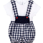 - Blau karierte Baumwoll-Culotte mit Hosenträgern