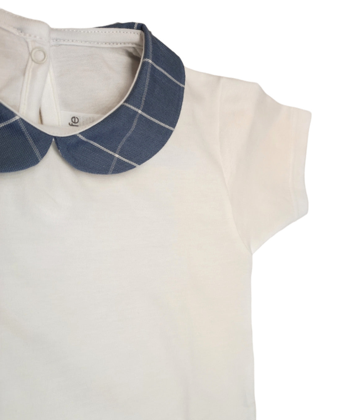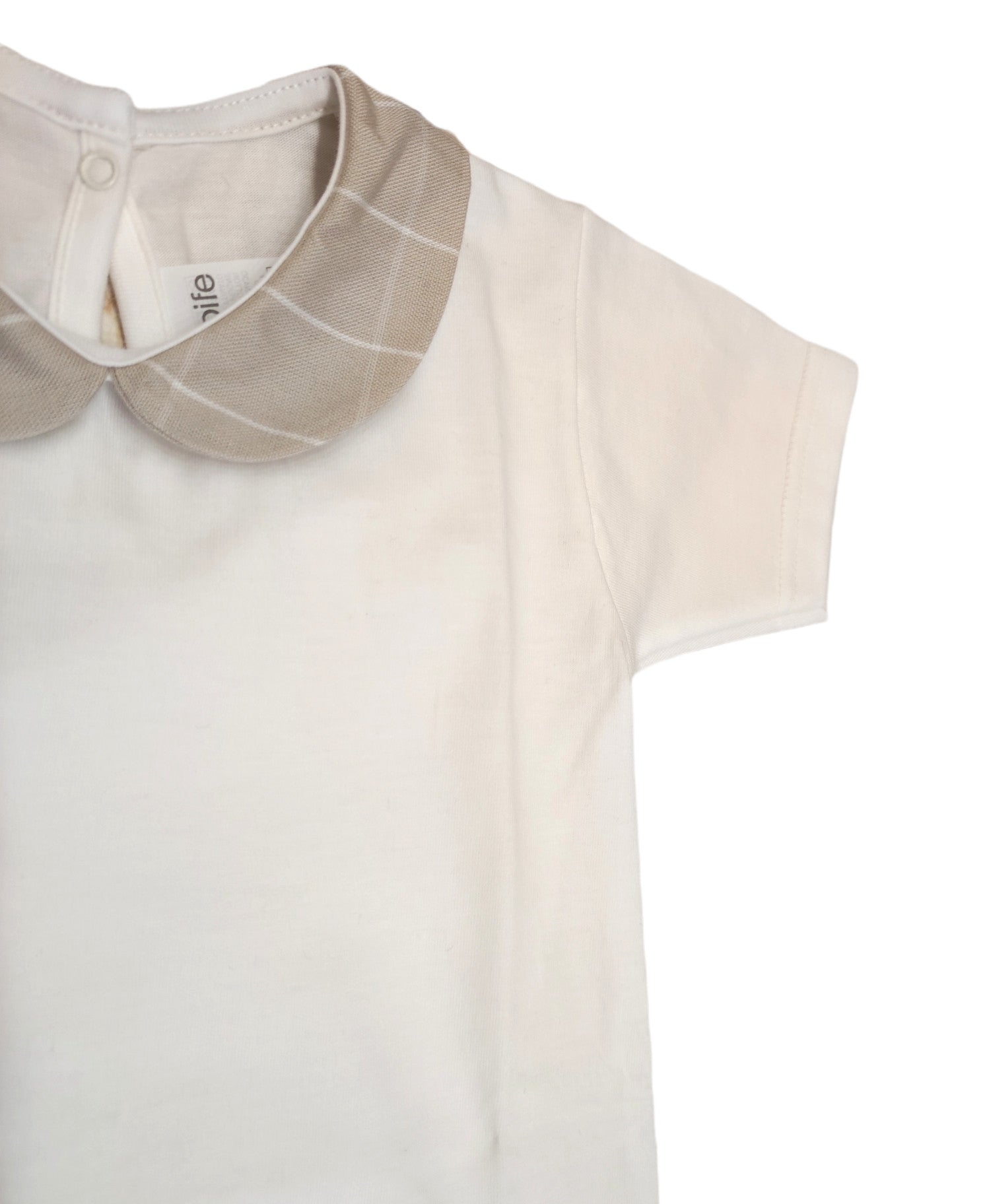 - Cremefarbener Body mit Kragen mit weißen Karos, erhältlich in zwei Varianten (wie die Culotte)