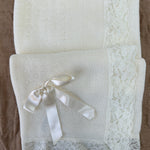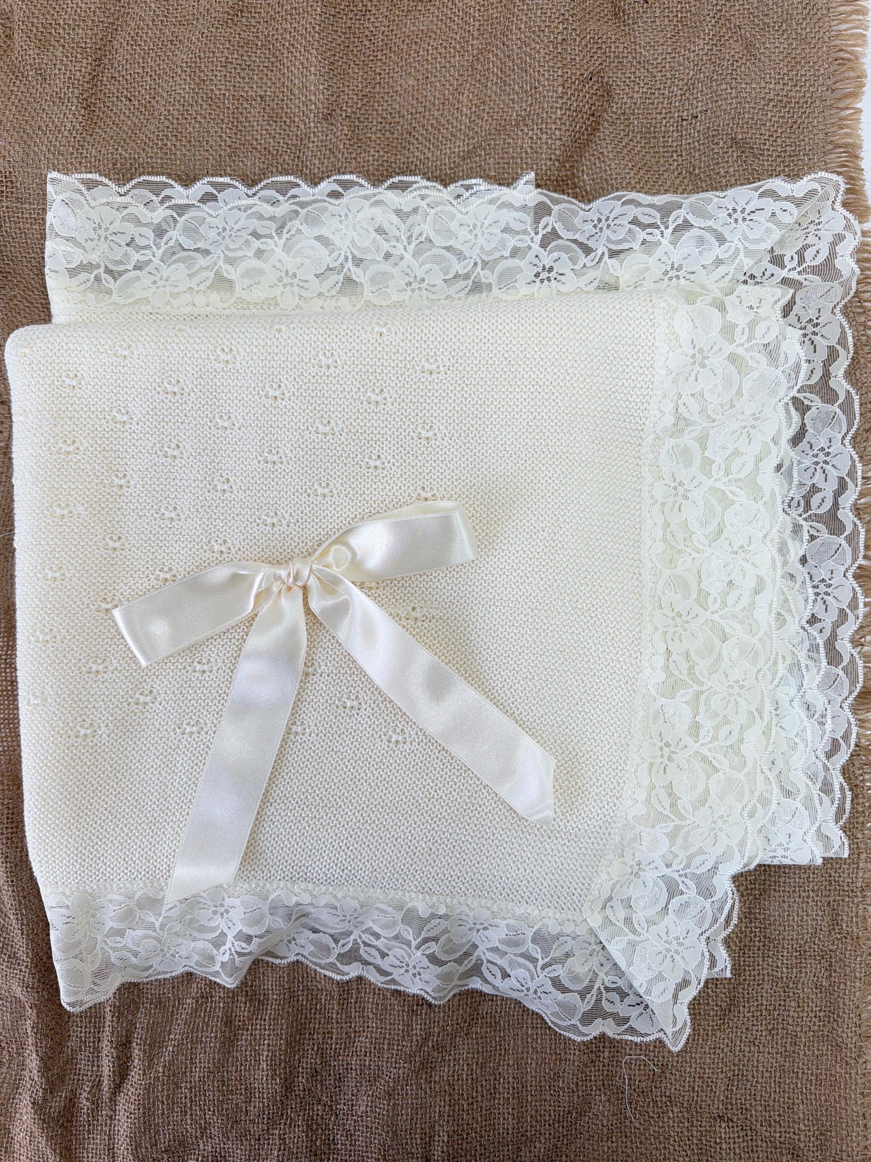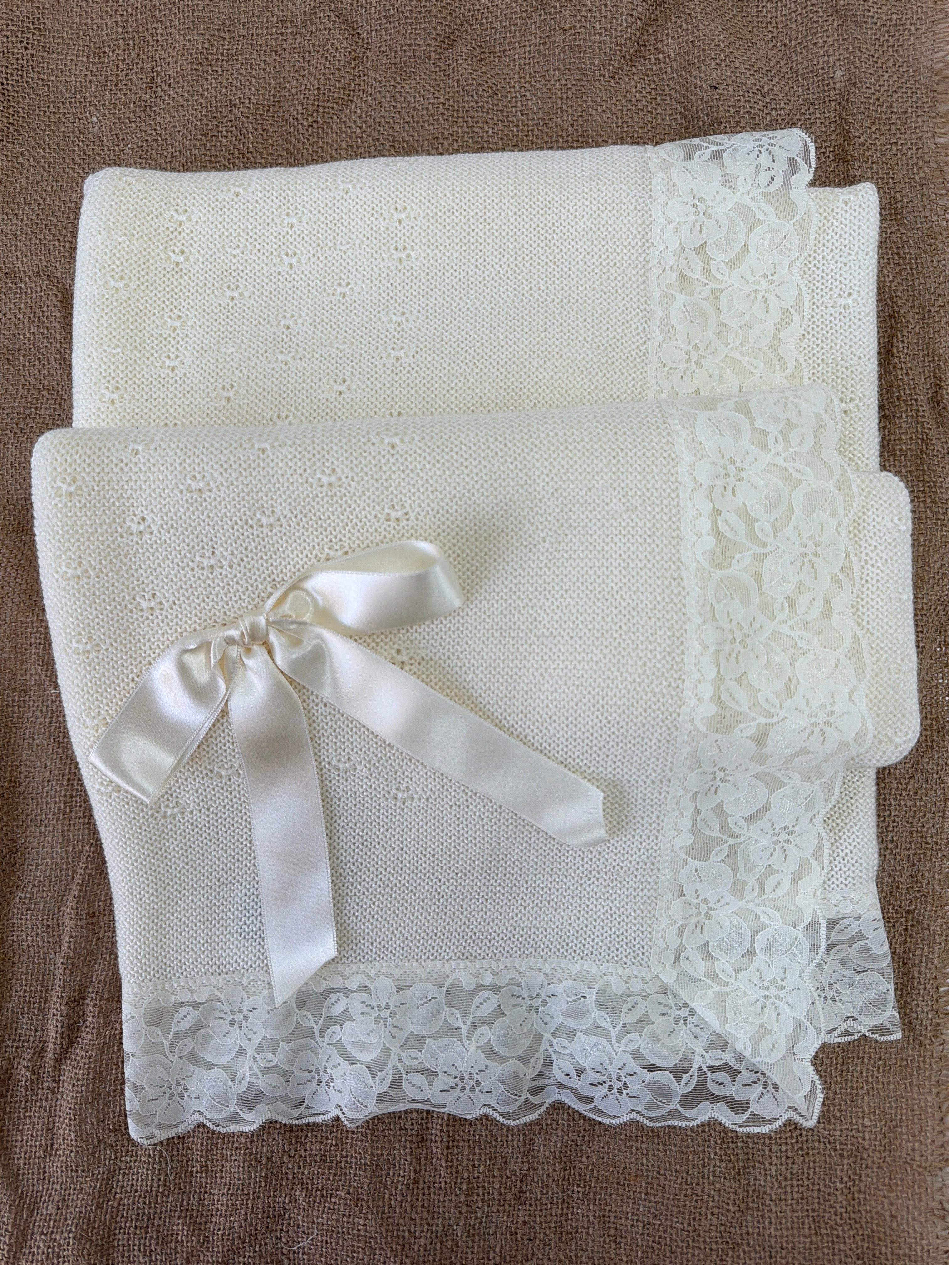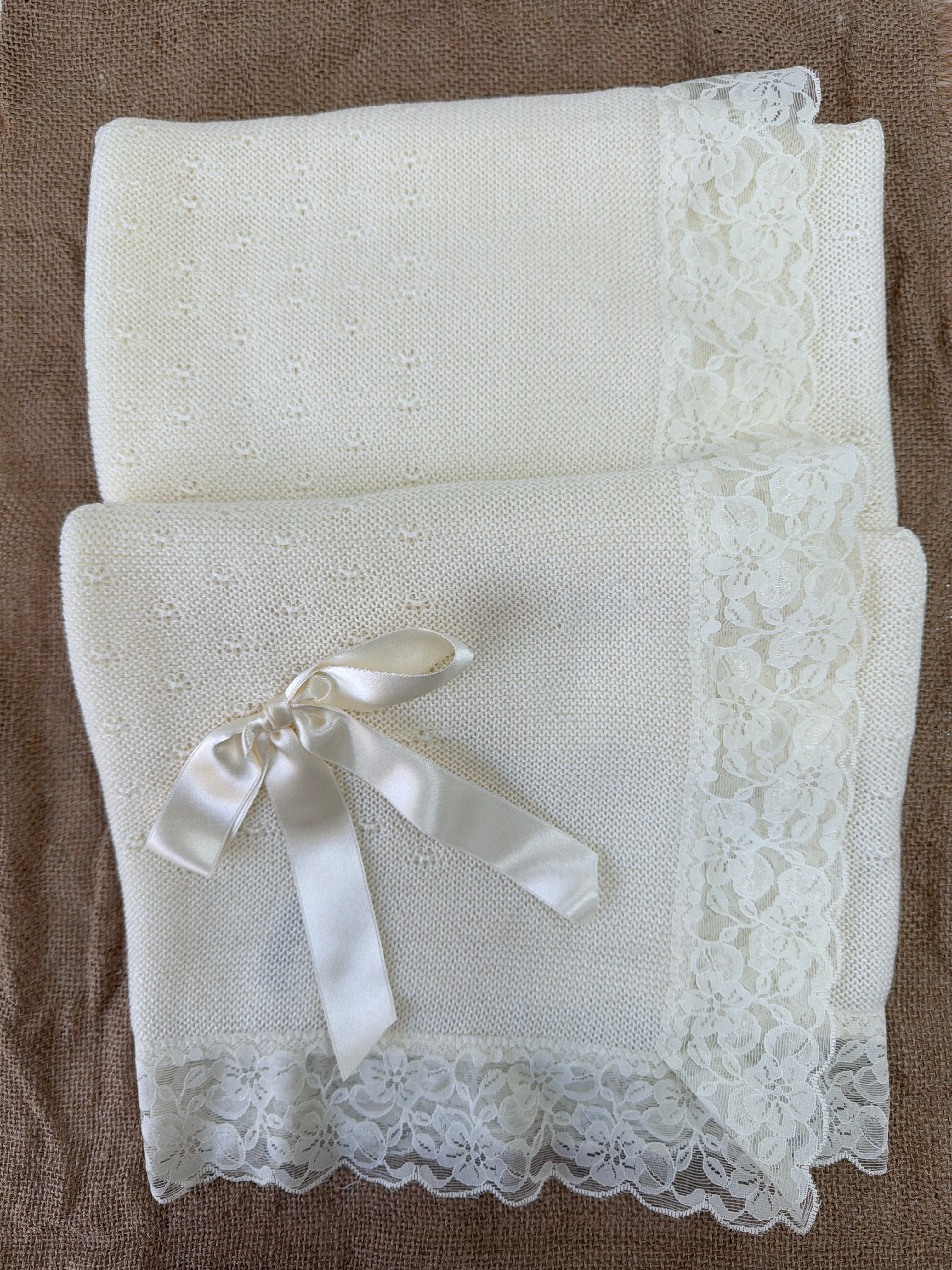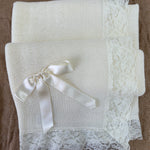 Questa coperta elegante in tessuto anallergico in acrilico è la scelta ideale per il tuo bambino. Con una bellissima balza in pizzo, un fiocco in raso e un design elegante, questa coperta è perfetta per il suo battesimo. Assicura comfort e qualità grazie ai suoi materiali anallergici.