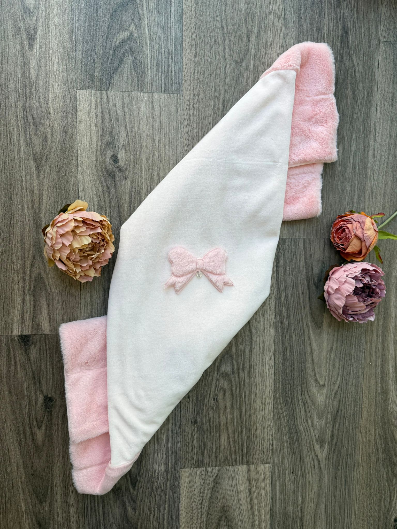 Questa coperta scialle in ciniglia con appicazione di fiocco in peluche è perfetta per la tua neonata. Con una misura di 65x85 cm, è ideale per l'uscita clinica e versatile per l'uso quotidiano. Realizzata con eleganza e con cotone di qualità, garantirà il massimo comfort al tuo bambino. Scegli Ninnaoh per la tua bimba.